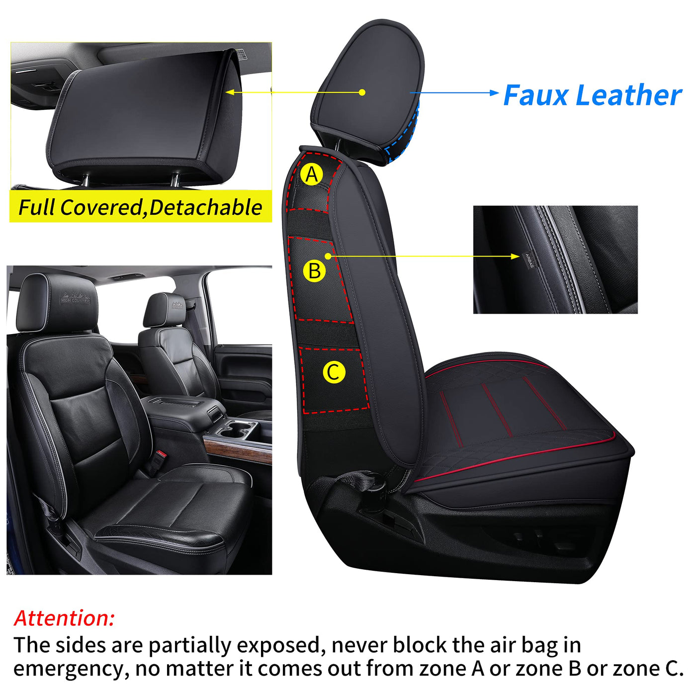 Luckyman Club Chevy Silverado/Sierra X04-S3 Seat Covers Full Set, Fit 2007-2013&2019-2025 1500/2008-2014&2020-2025 2500 Hd/3500