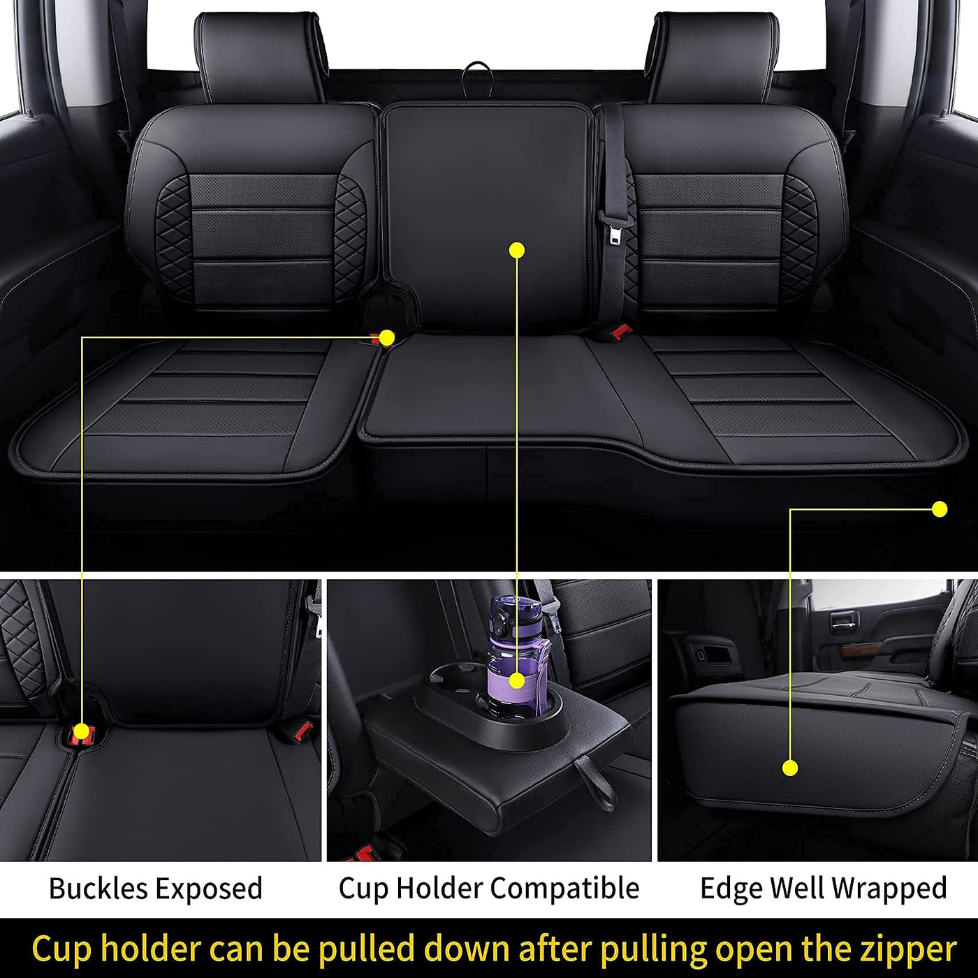 Luckyman Club D04-S2-3 Silverado Seat Covers, Fit For 2007-2013 Chevy Silverado Gmc Sierra 1500 2007-2014 2500/3500 Hd Crew Cab With Water Proof Faux Leather(Full Set, Black)