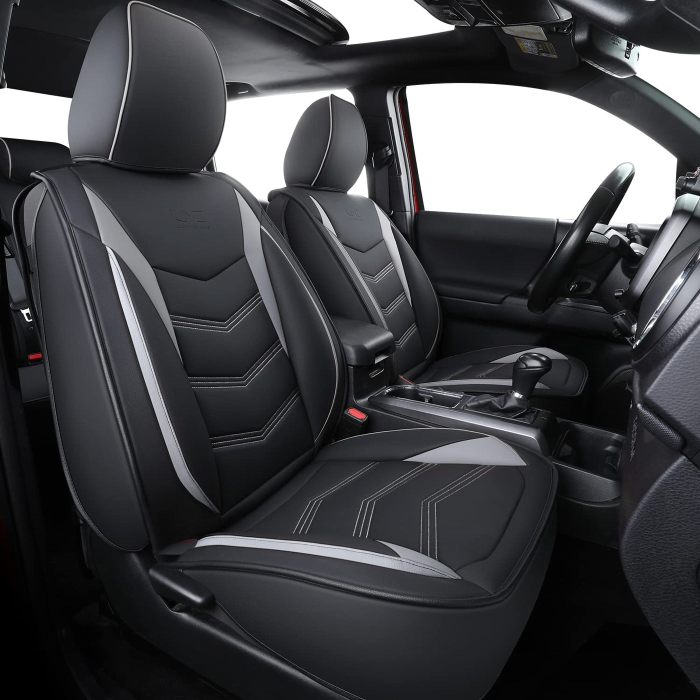 Luckyman Club Front-Only Seat Covers For Toyota Tacoma 2005-2023 With Waterproof Faux Leather (Front Only, Gray)