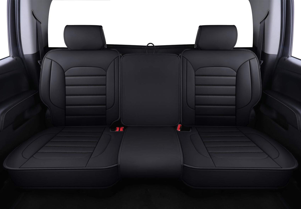 Q: What material are the seat covers made of, and how do they perform against spills and dirt?A: The seat covers are made of high-quality faux leather, which is soft to the touch and provides excellent waterproof protection against spills, dirt, and sweat, making them easy to clean, especially if you have pets.