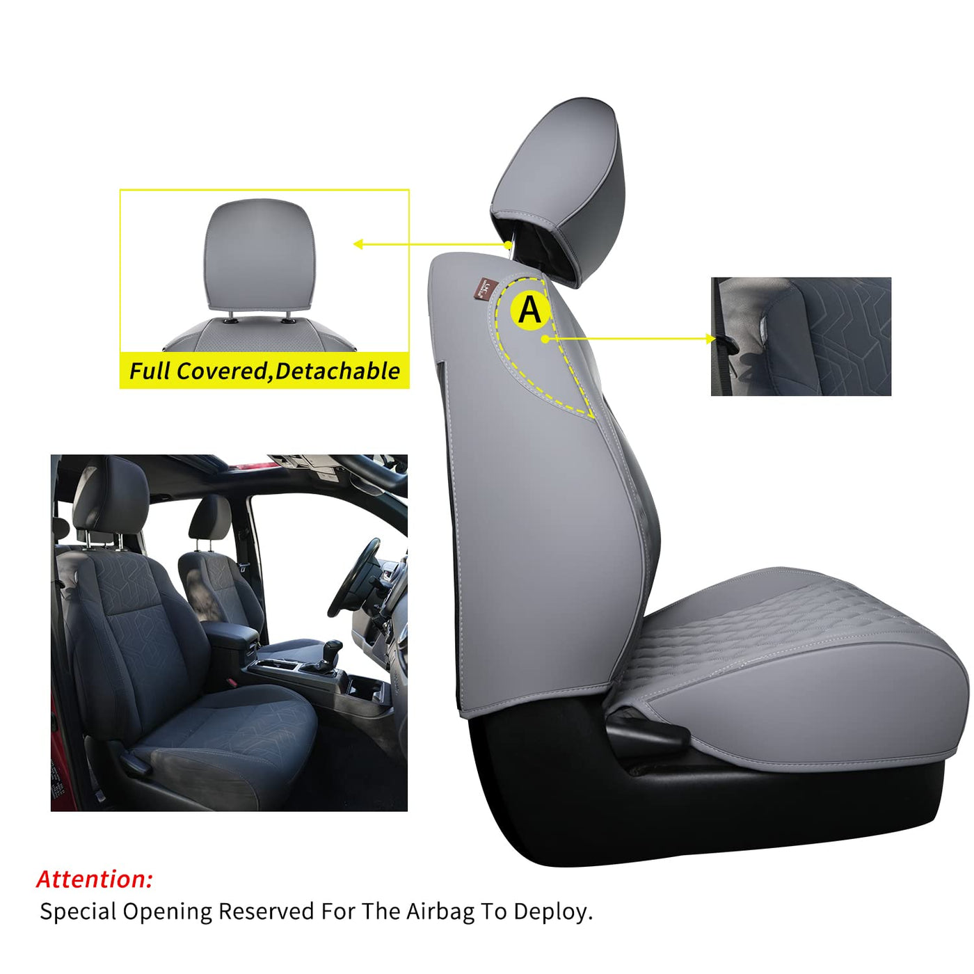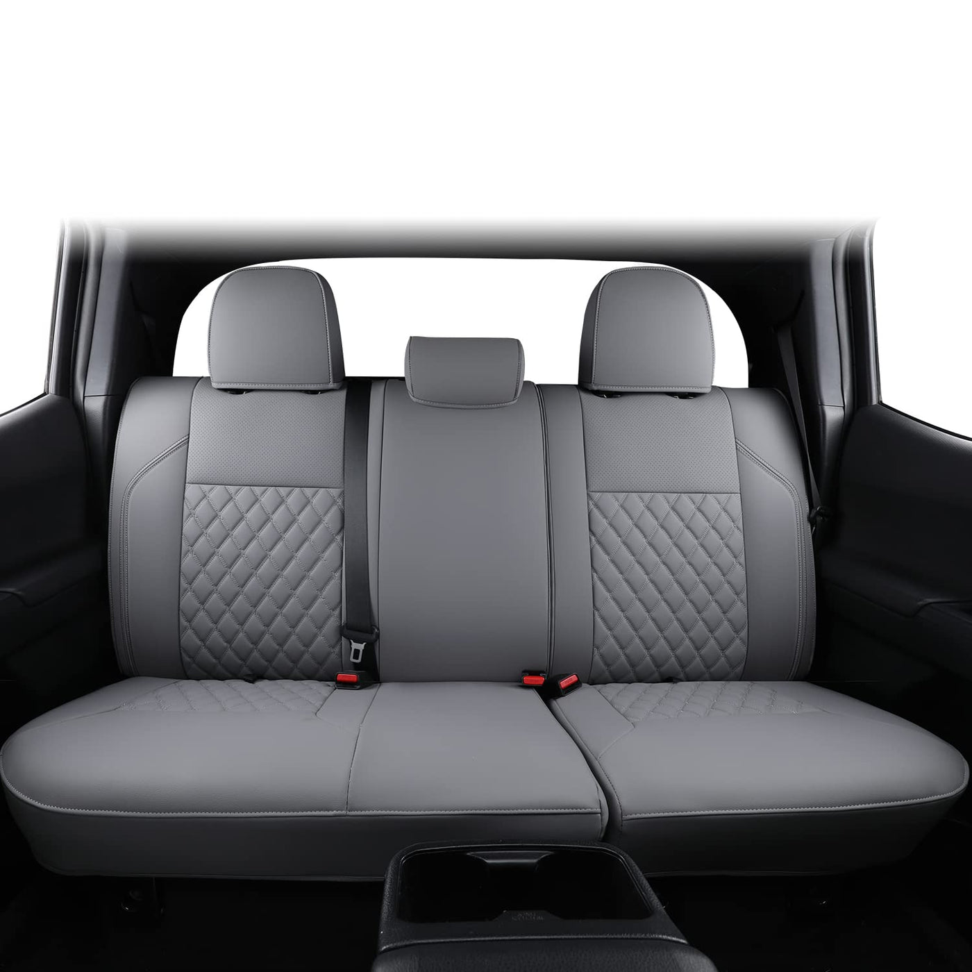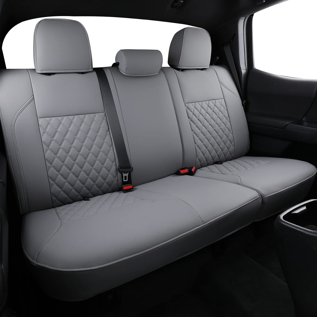 Luckyman Club Tacoma Full-Set Seat Covers P04-Hy, Fit Tacoma 2016 2017 2018 2019 2020 2021 2022 2023 Double/Crew Cab Only, With Faux Leather (Full Set, Gray)