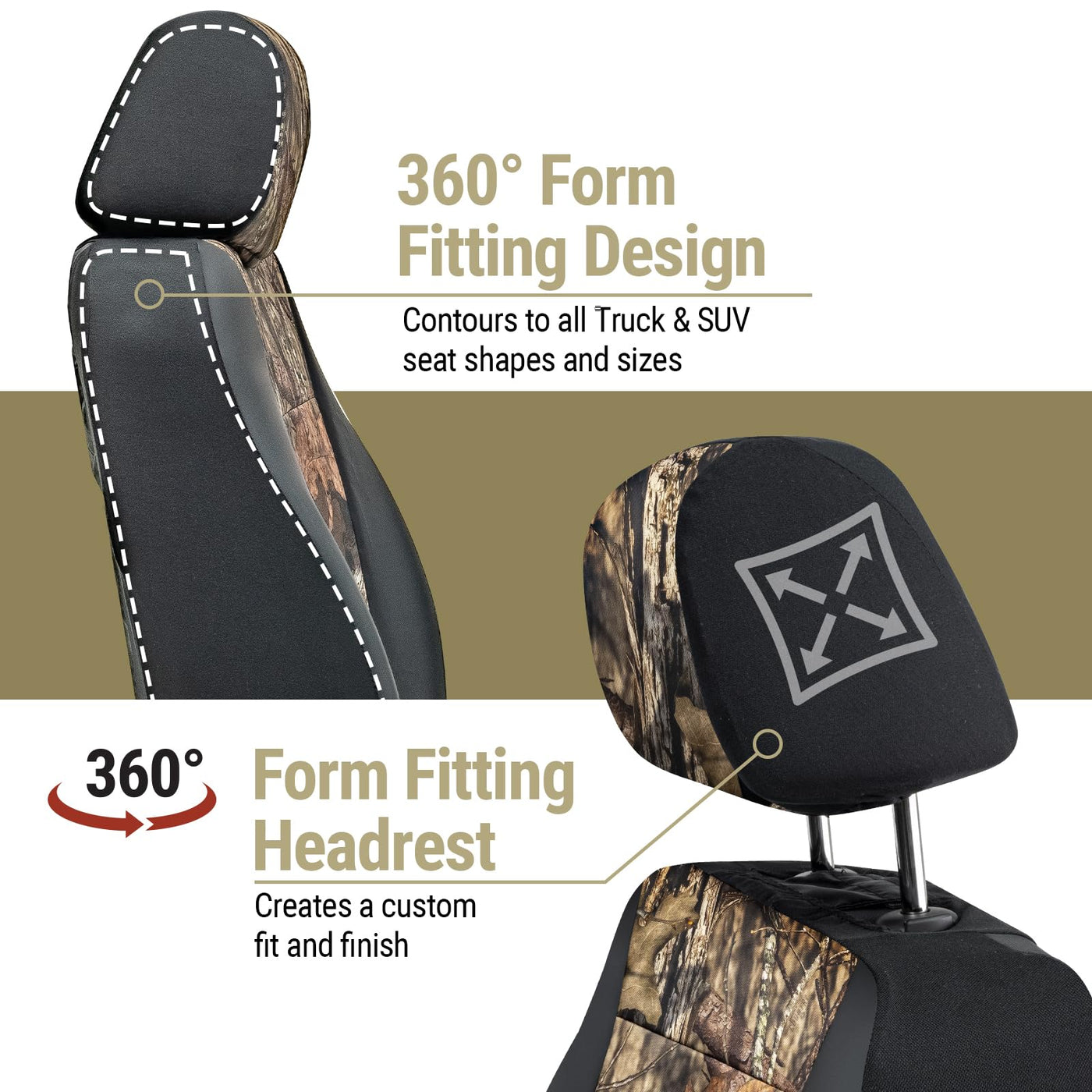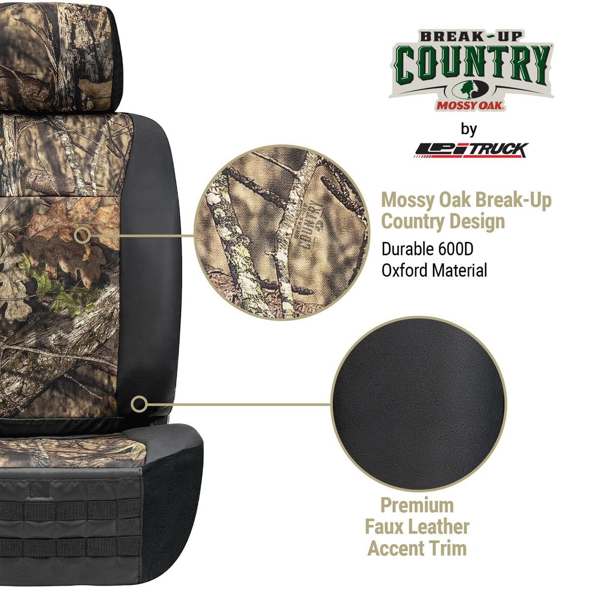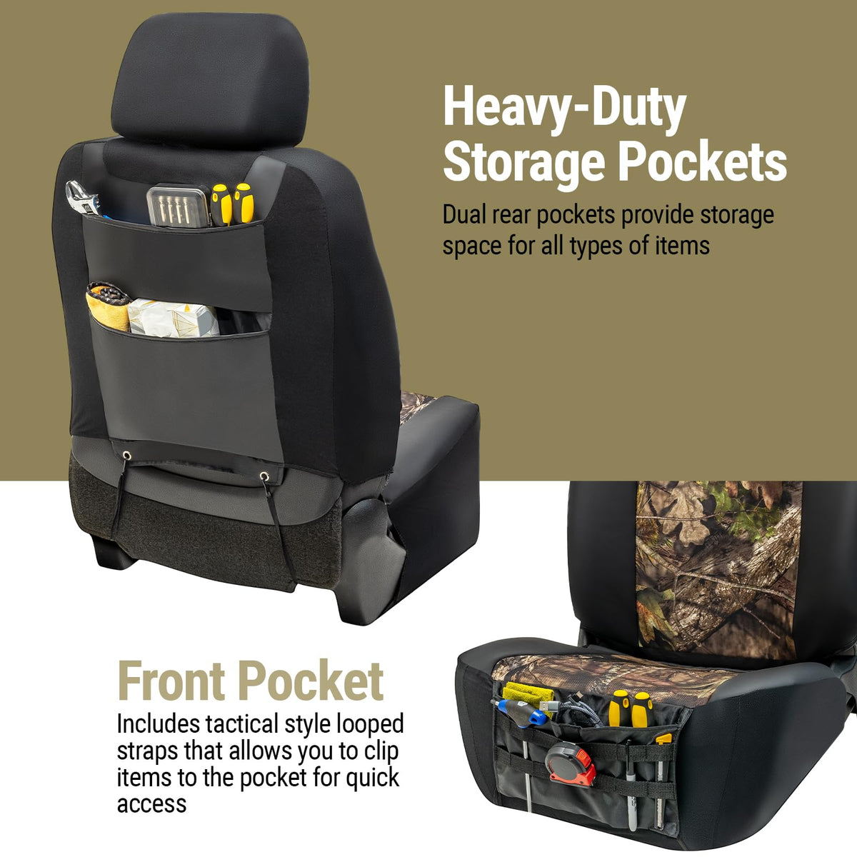 Mossy Oak Break-up Country Heavy Duty Seat Covers for Front Seats; Fits Full-Size Trucks or SUVs; Includes Front and Rear Storag