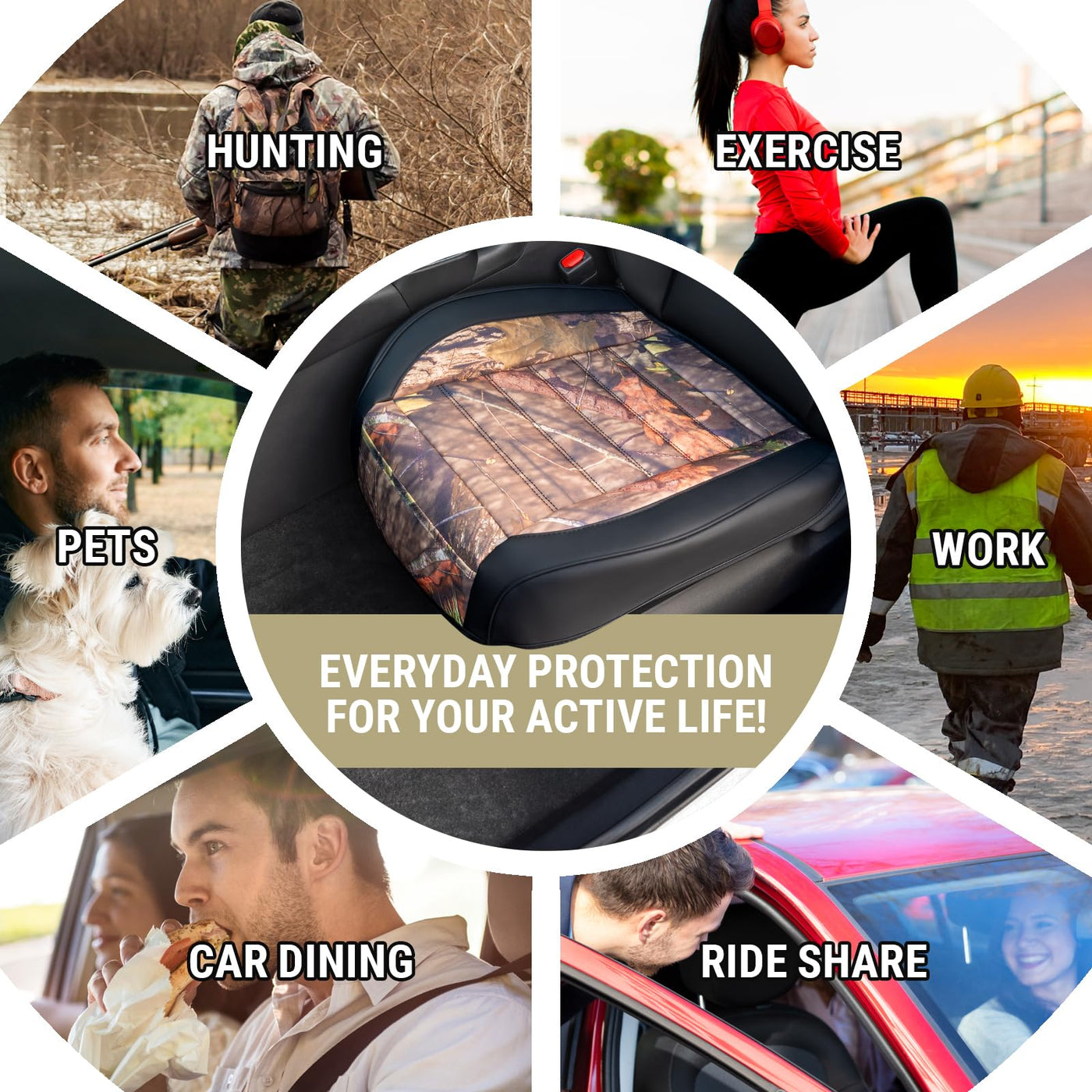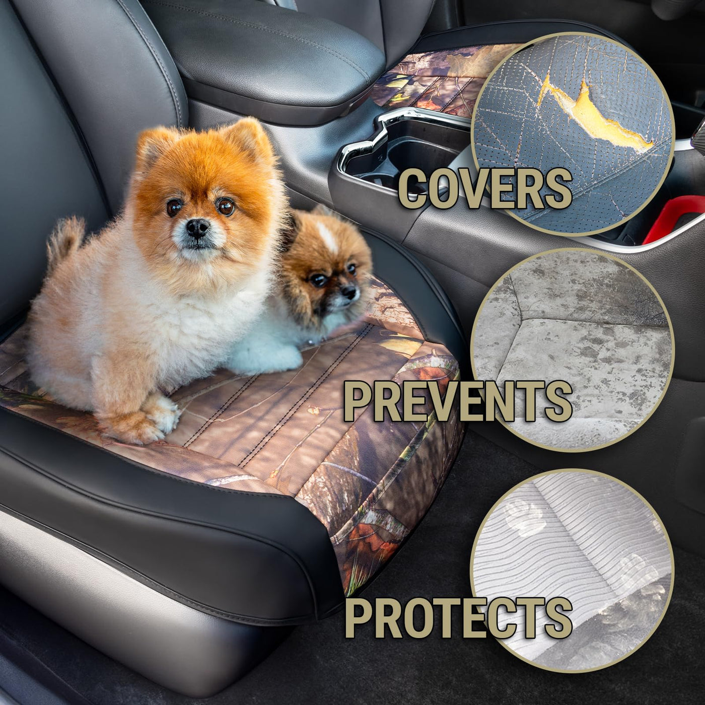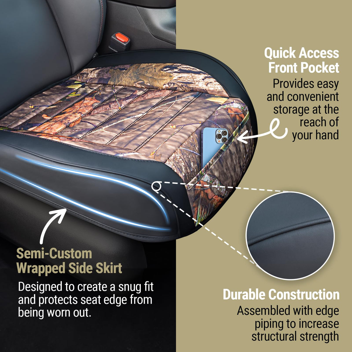 Mossy Oak Camo Car Seat Covers, Padded Bottom Seat Cushion Cover with Bottom Wrap-Around & Anti-Skid; for Cars SUV Truck Minivan