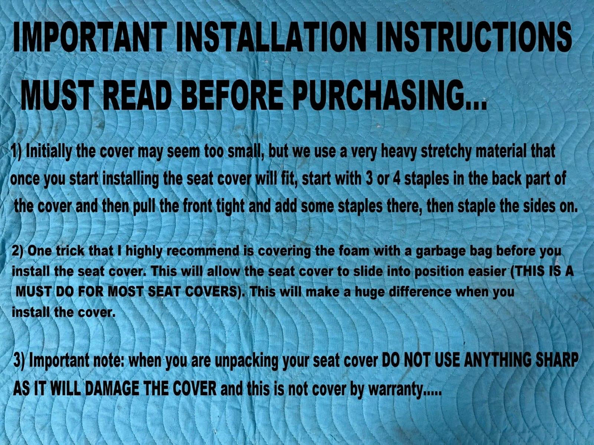 Please Note We Are Selling Only The Seat Cover Itself !Not The Complete Seat Installation Note: Please Cover The Foam With A Piece Of Plastic/Garbage Bag Before Installing New Seat Cover, This Will Allow The Cover To Slide Into Position And Make Installation Much Easier. The Picture Above Shows A Seat With Our Cover Installed On It, Made Here In North America. Replace Your Stock Seat Cover And Fasten Just Like The Original Cover. Our Covers Are Made Of Special Cold Resistant Outdoor 4-Way Stretch Marine Vinyl Material (Please Note That This Is Not The Vinyl That Most Of The Others Sell On The Market, This Is The Very Best Vinyl Available With A Cold Crack Rating Of -65) We Take Great Pride To Ensure That These Replacement Seat Covers Are Made From The Highest Quality Vinyls Available.