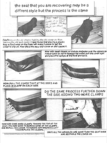 Q: How do I install the replacement seat cover?A: To install the seat cover, we recommend covering the foam with a piece of plastic or a garbage bag before fitting the new cover. This method allows the cover to slide into position more easily, facilitating a smoother installation process.