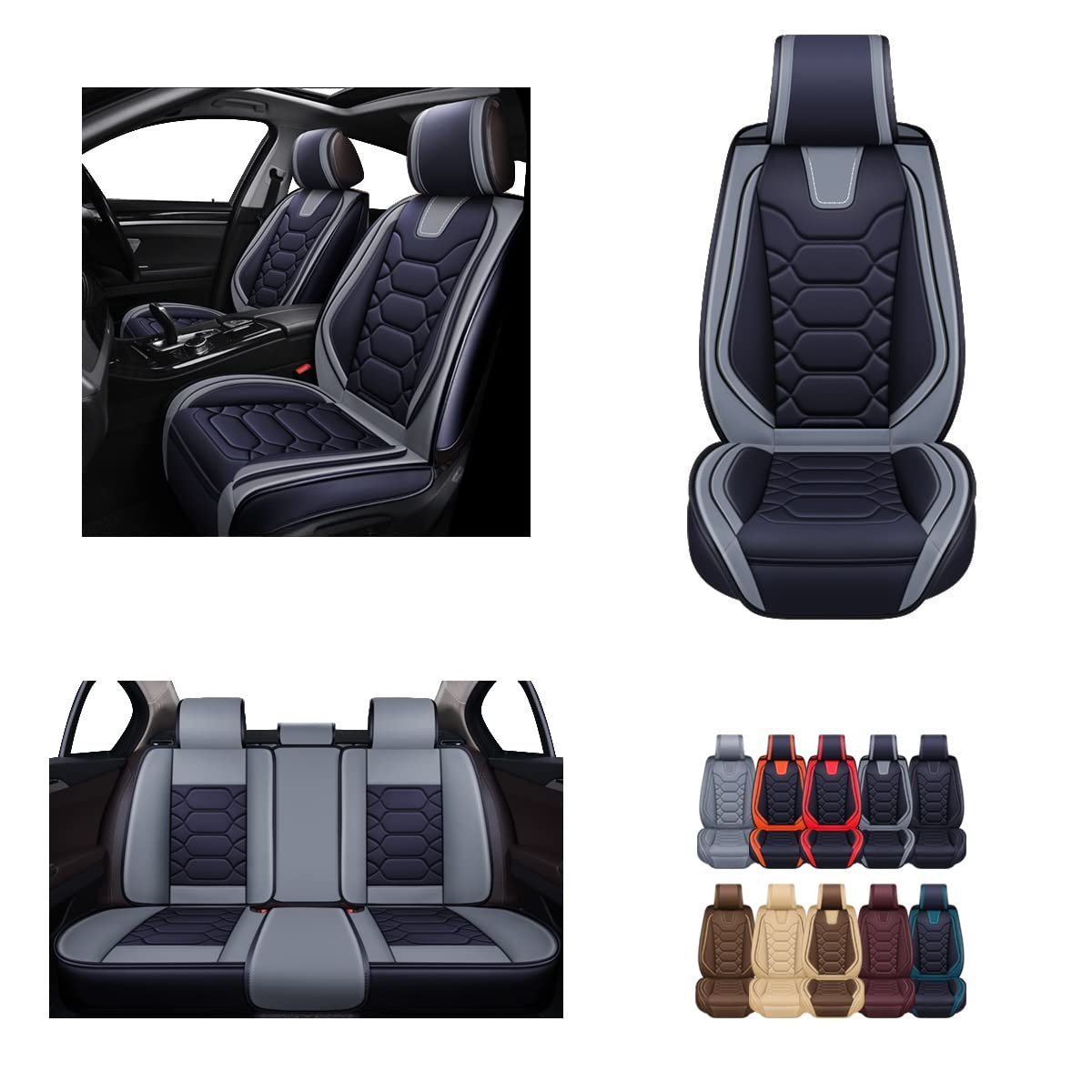 Oasis Auto Car Seat Covers Premium Waterproof Faux Leather Cushion Universal Accessories Fit Suv Truck Sedan Automotive Vehicle Auto Interior Protector Full Set (Os-004 Black&Gray)
