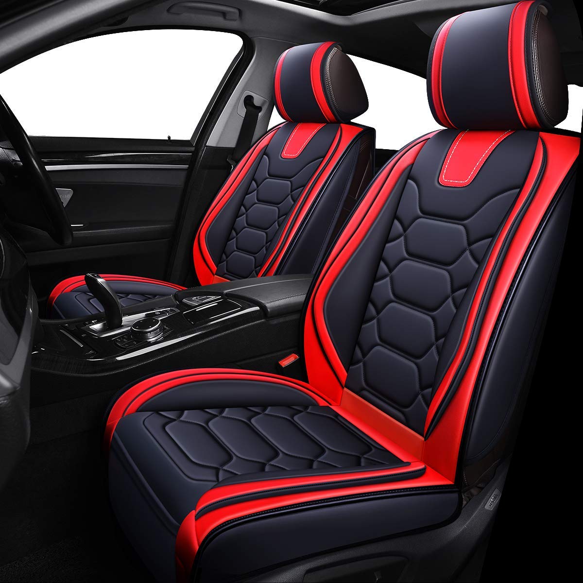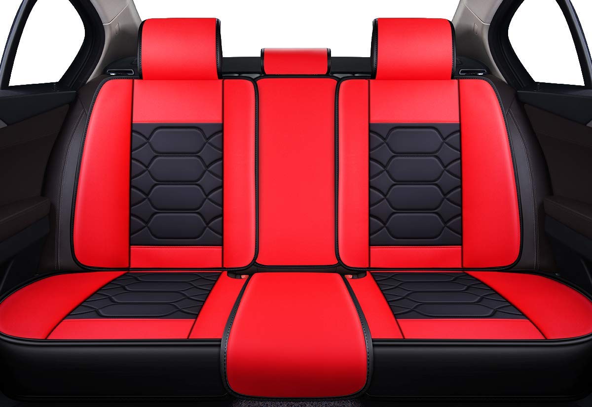 Oasis Auto Car Seat Covers Premium Waterproof Faux Leather Cushion Universal Accessories Fit Suv Truck Sedan Automotive Vehicle Auto Interior Protector Full Set (Os-004 Black&Red)