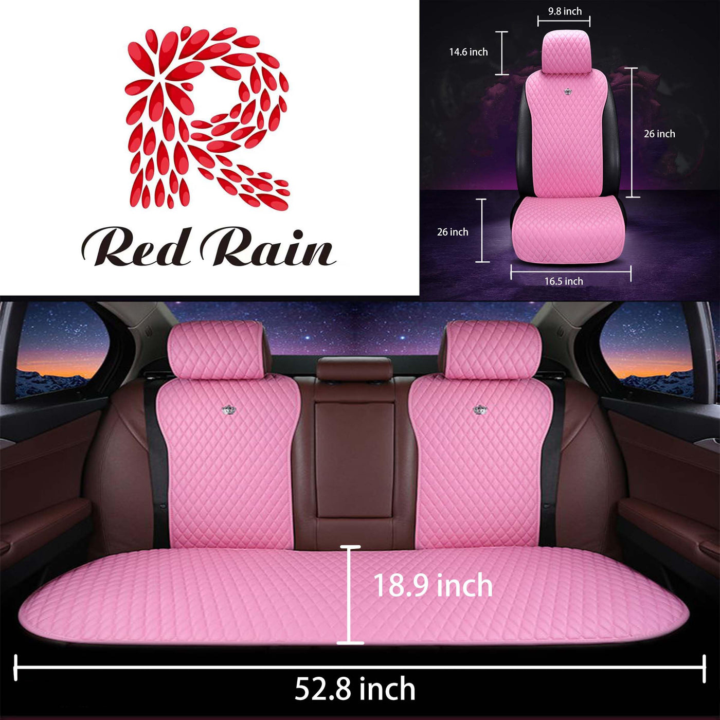 Red Rain Universal Seat Covers For Cars Leather Seat Cover With Crown Pink Car Seat Cover 2/3 Covered 11Pcs Fit Car/Auto/Truck/S
