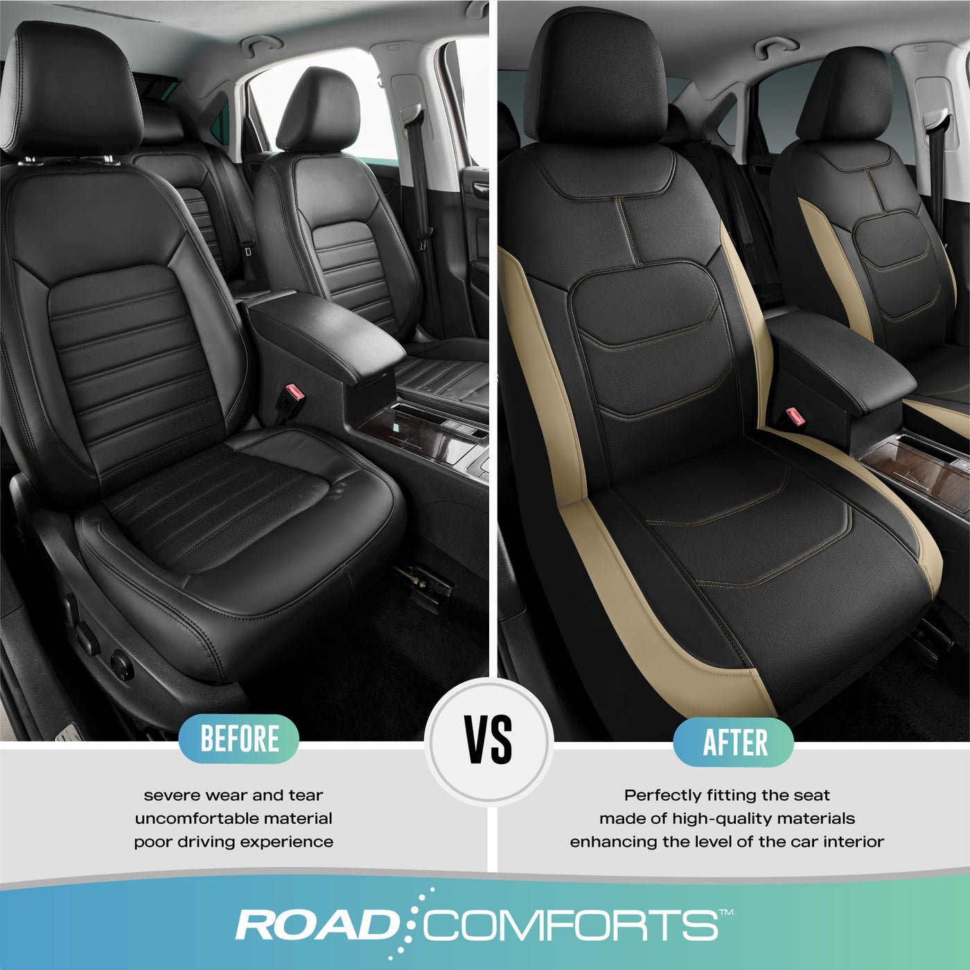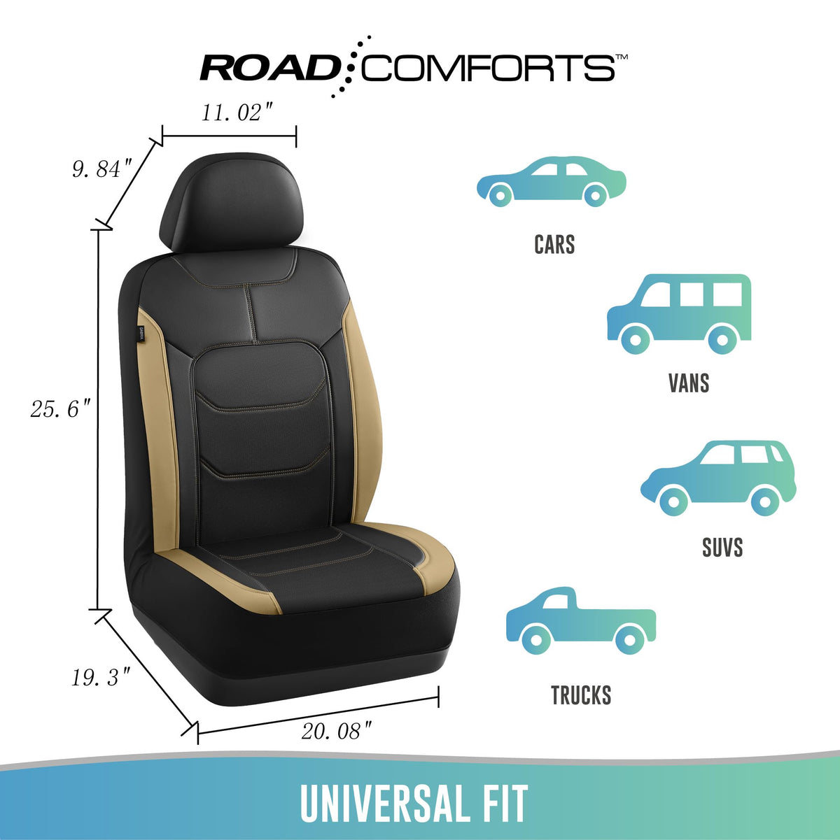 Road Comforts Premium Leather Front Seat Cover - Airbag-Compatible, Universal for Cars, SUVs, Trucks, and Vans -Beige