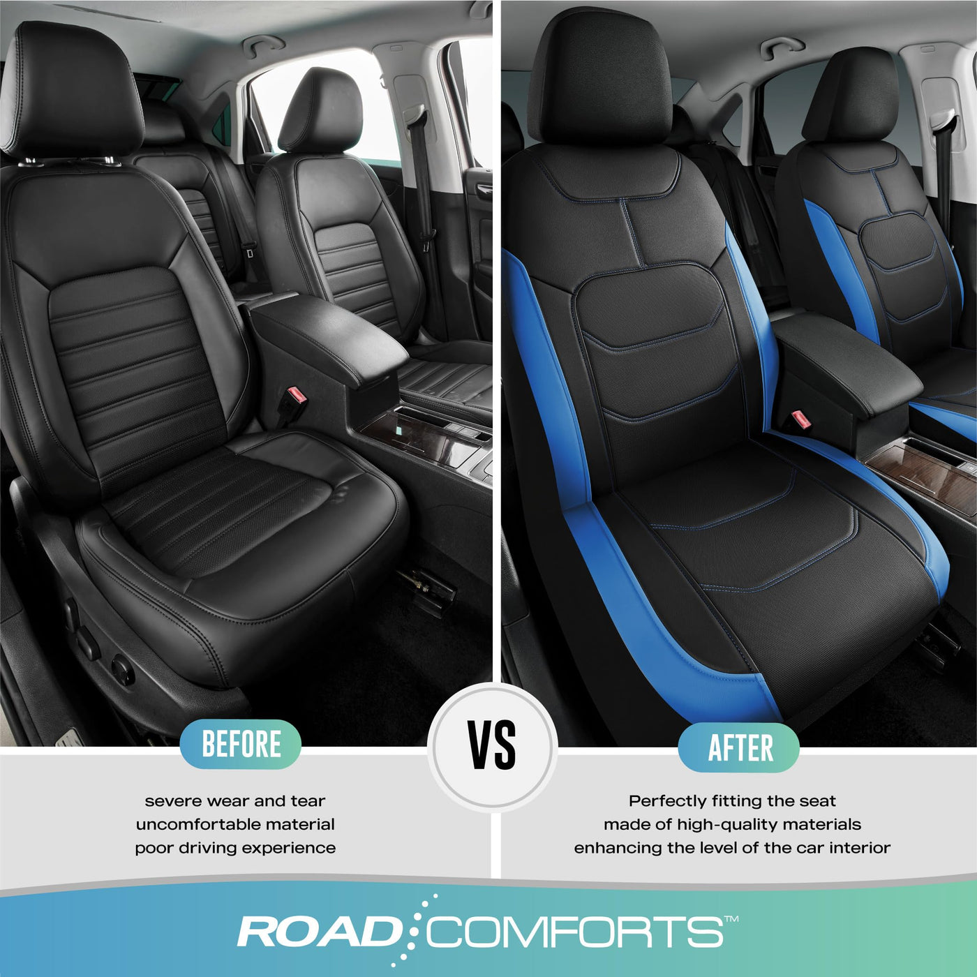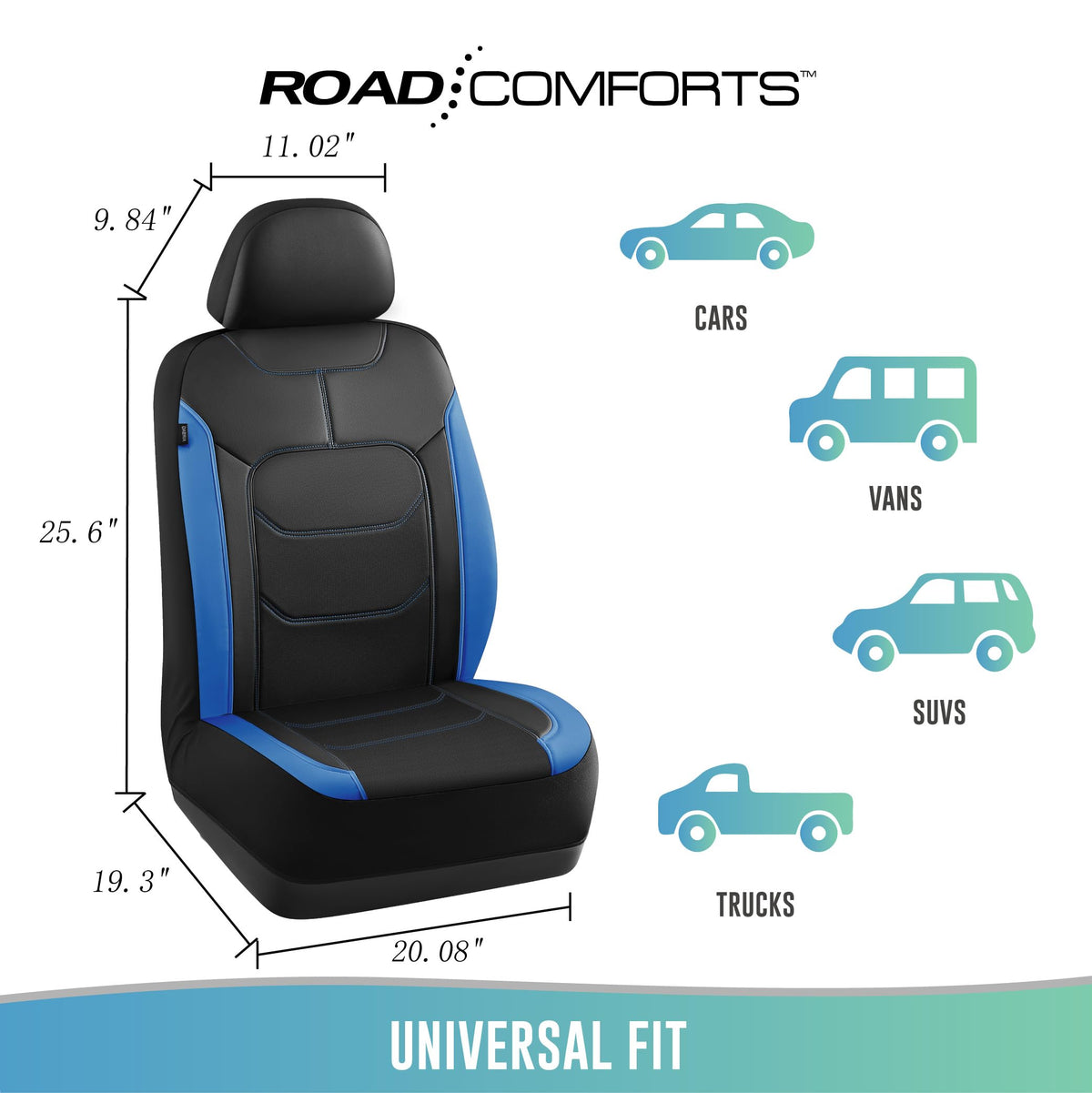 Road Comforts Premium Leather Front Seat Cover - Airbag-Compatible, Universal for Cars, SUVs, Trucks, and Vans - Blue
