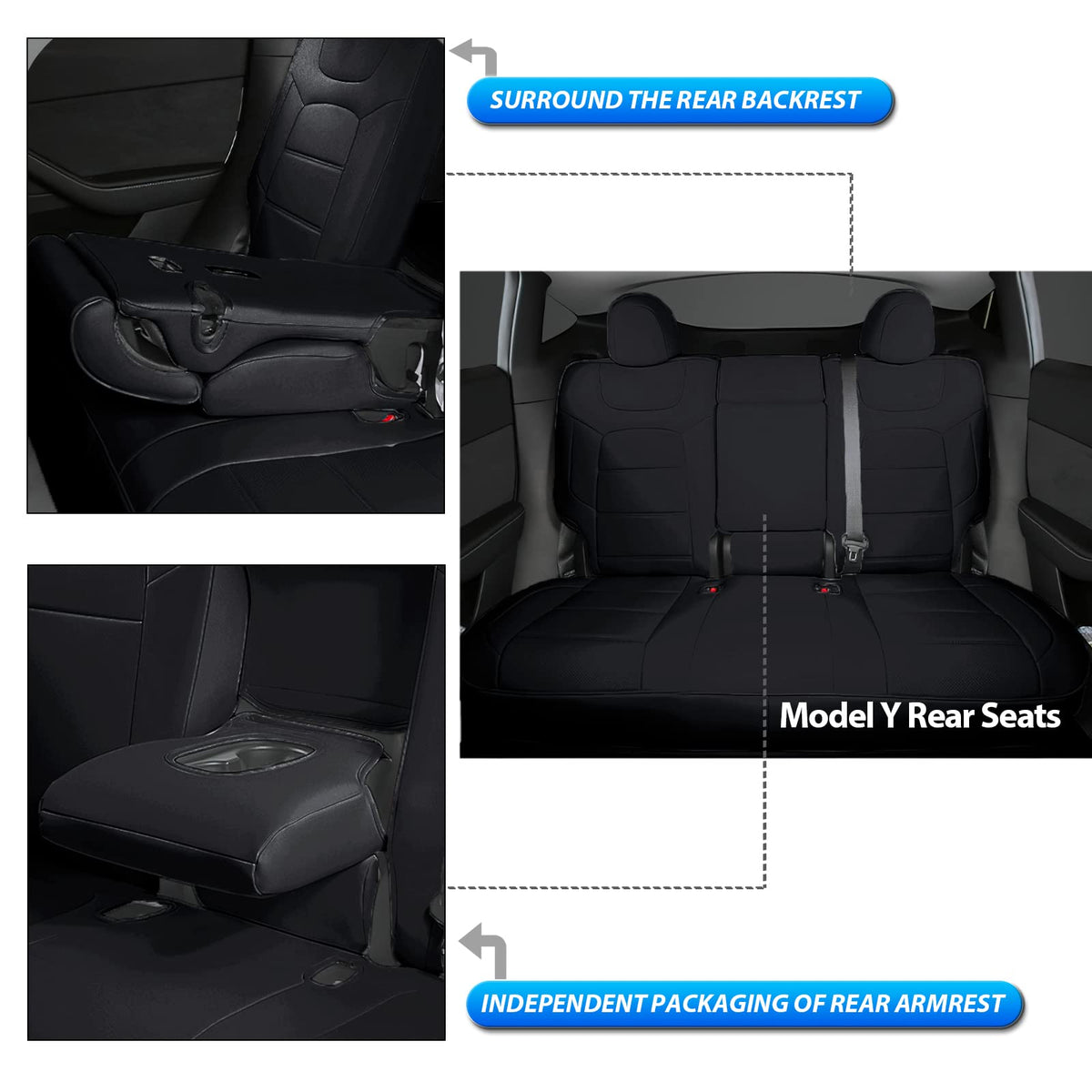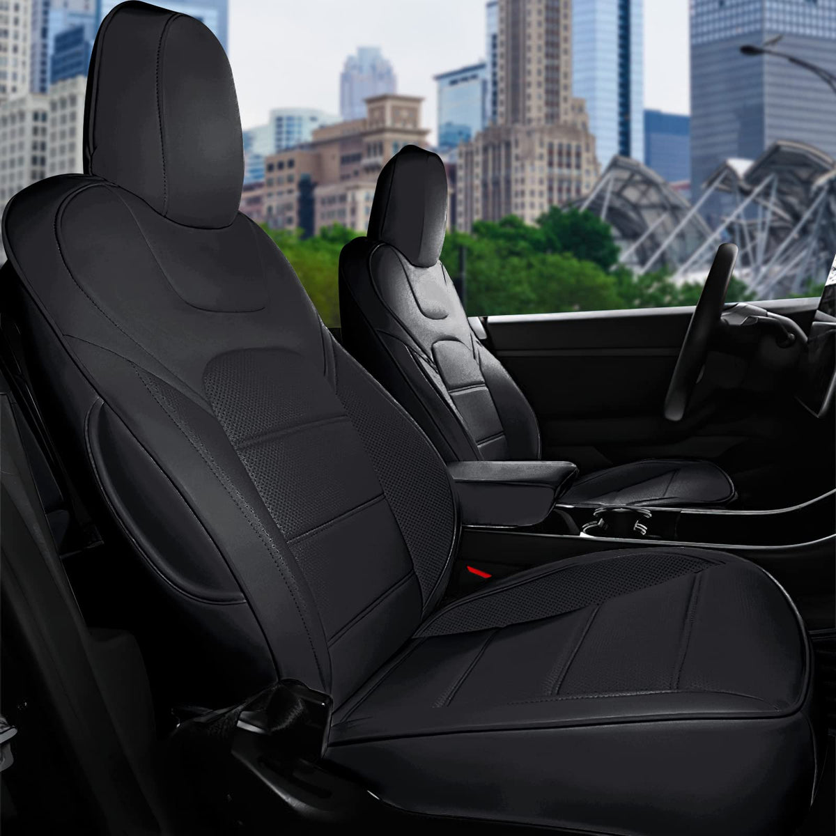 RuiYue Carry Fit Tesla Model Y 5-Seater Car Seat Cover, Nappa Faux Leather Seats Protector, Novel Design Full Surround Customize