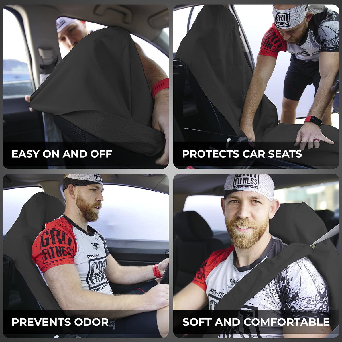 Ultrasport Front Seat Cover, Universal Fit Waterproof & Sweatproof Car Seat Protector, Odor-Resistant, Machine Washable & Spill-Proof Towel Cover For Gym, Pet, Travel & Outdoor Adventure, Black
