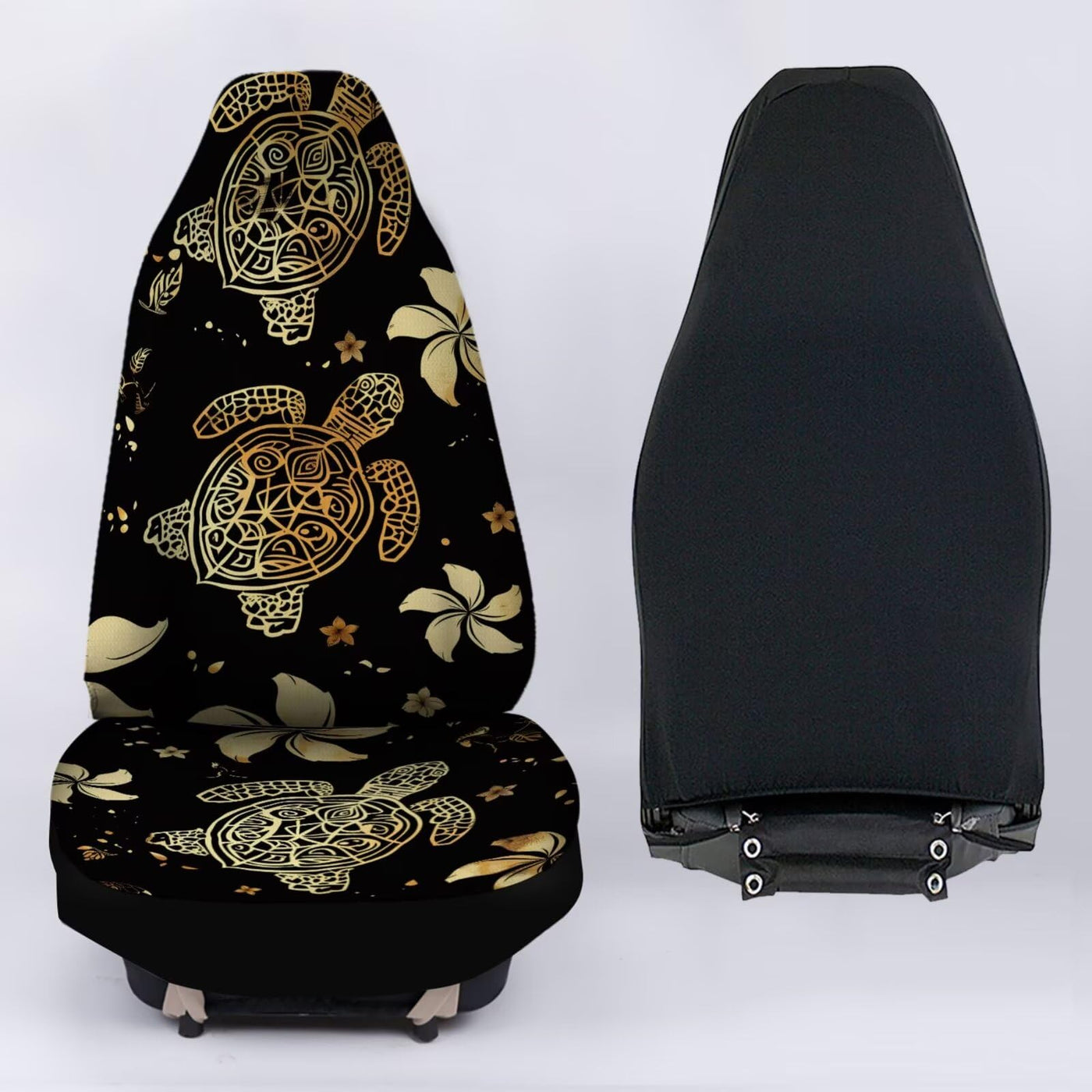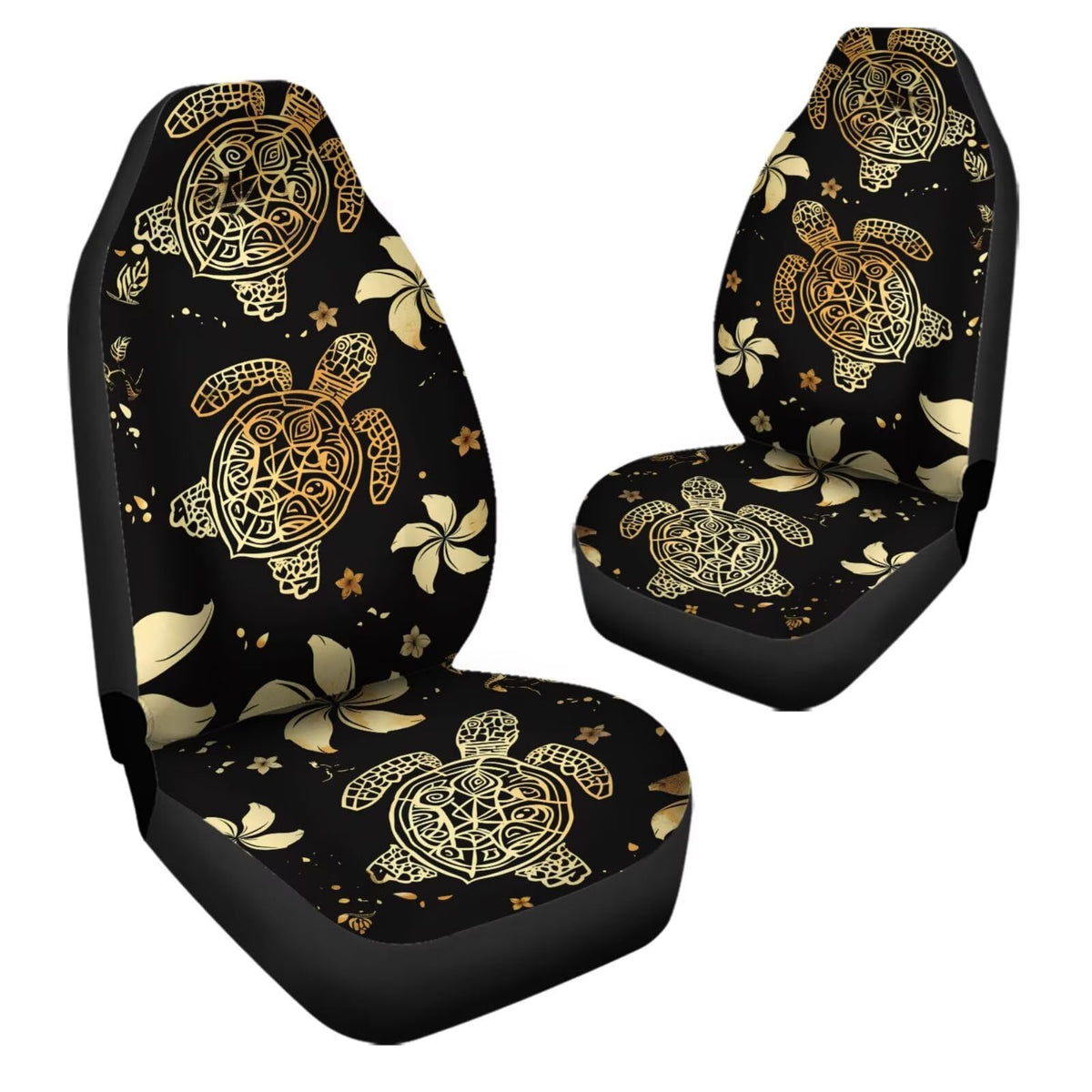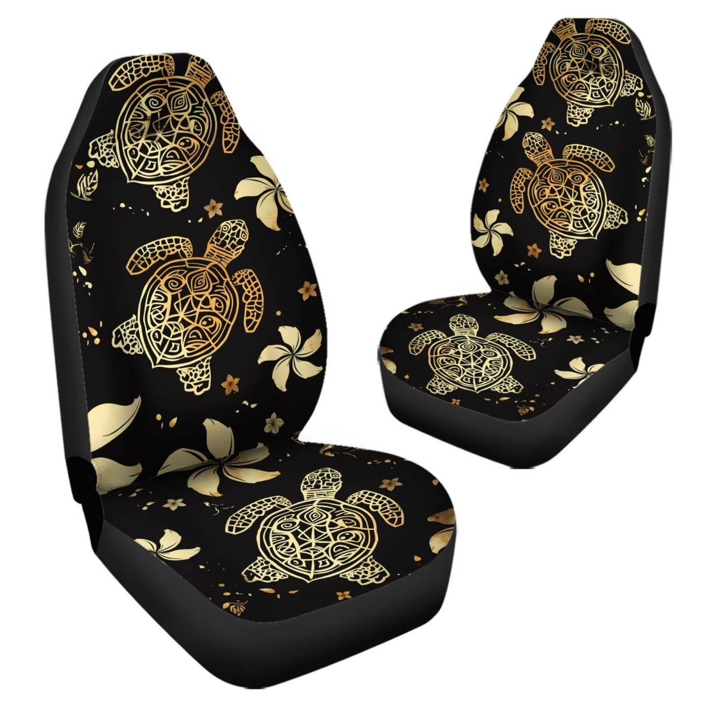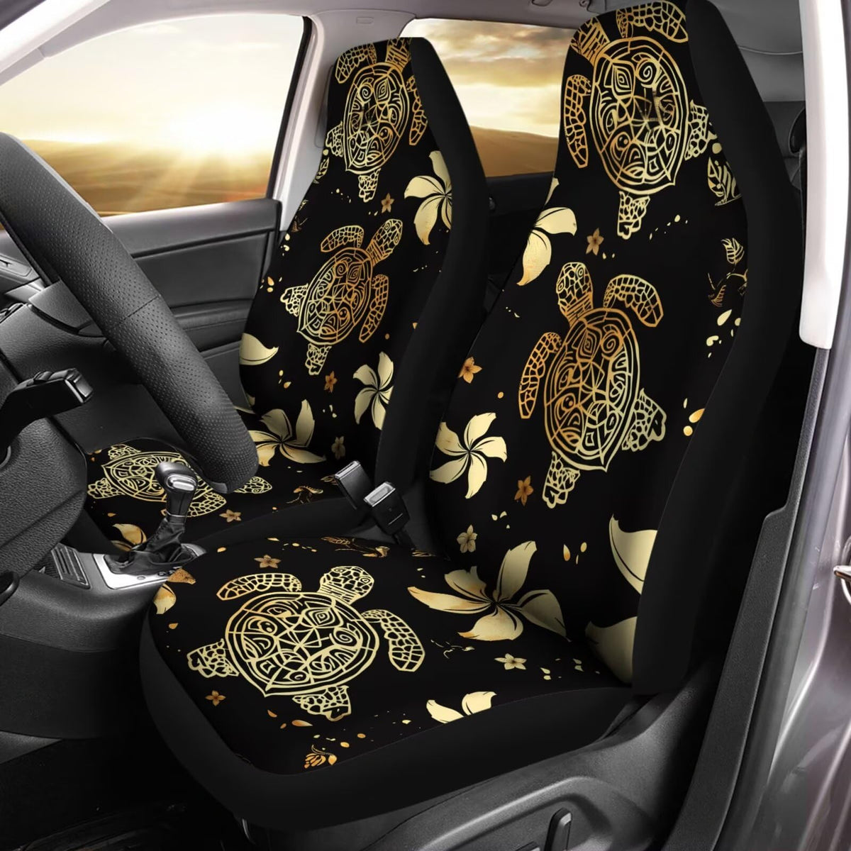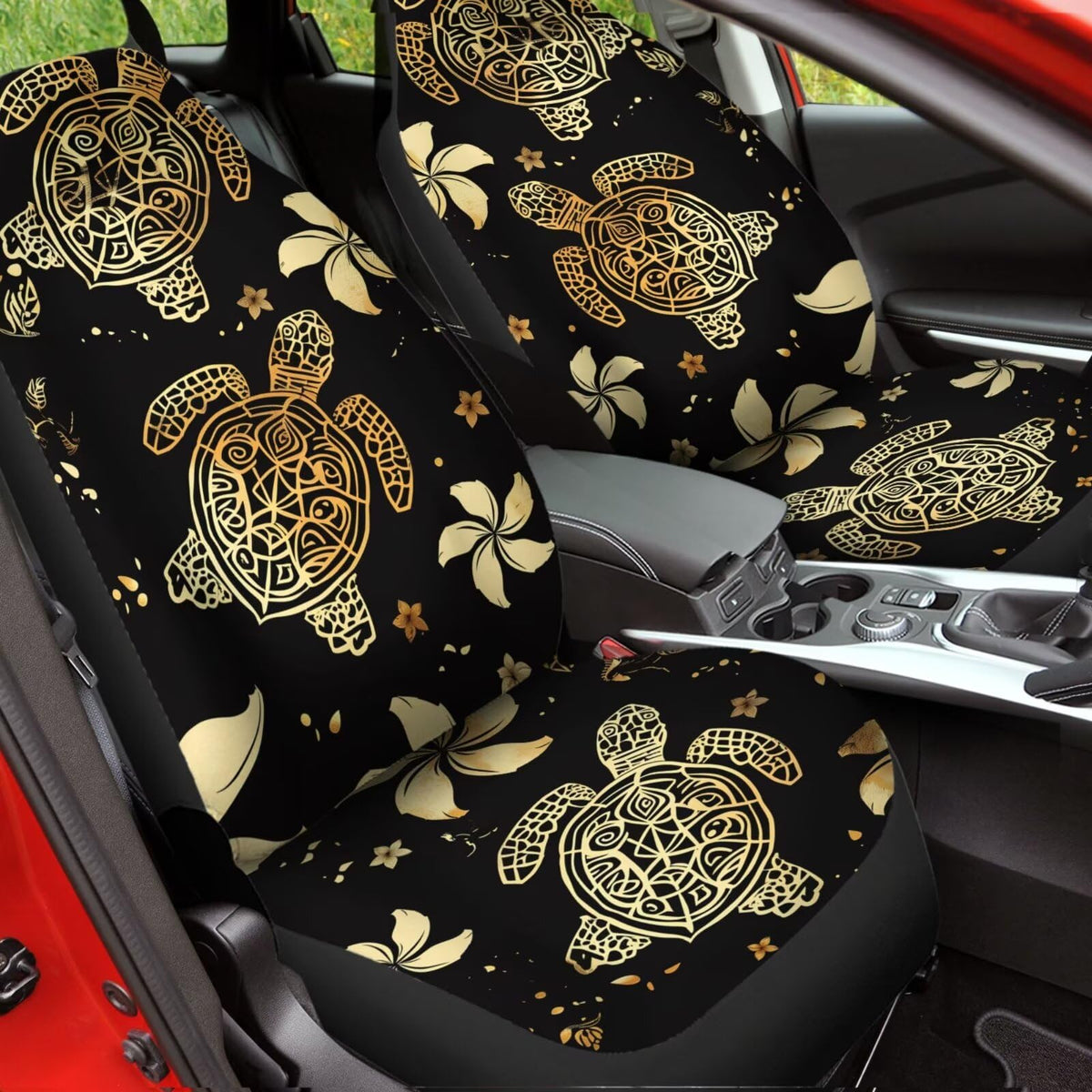 UNICEU Golden Floral Turtle Car Seat Covers for Front Seats,Hibiscus Flower Sea Turtle Auto Seat Cover Accessories for Women Uni