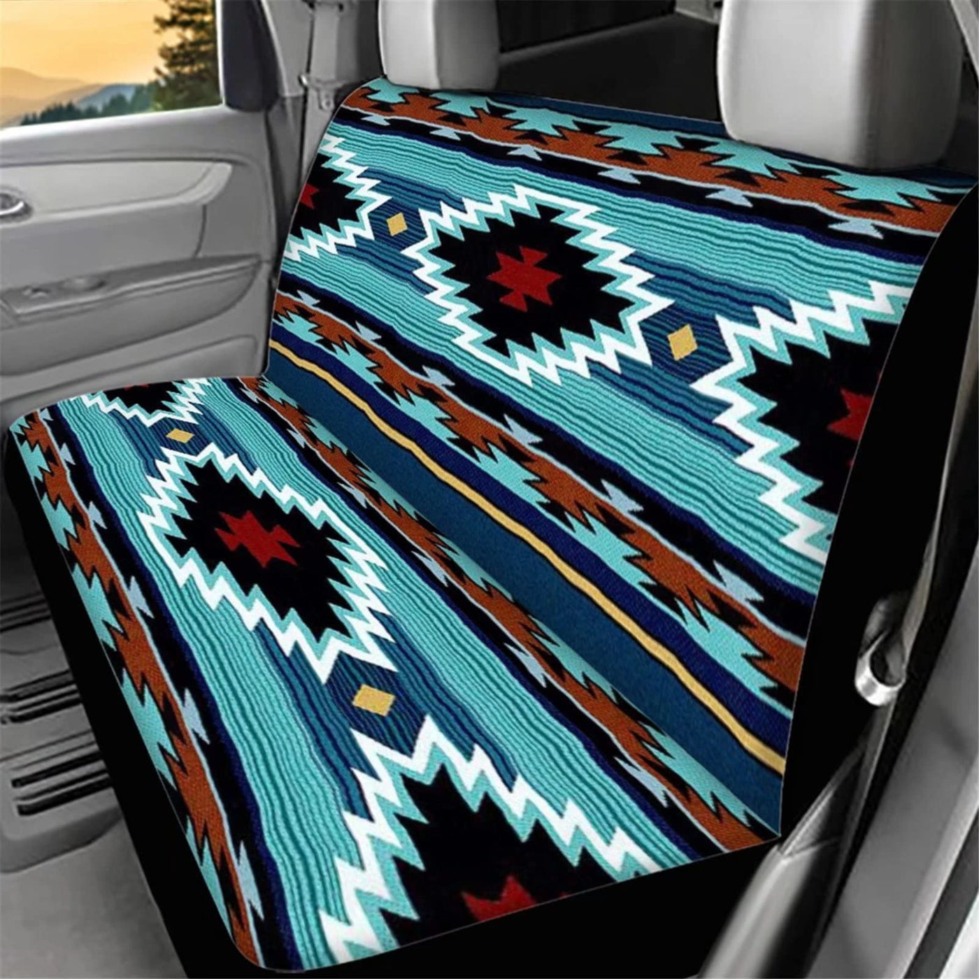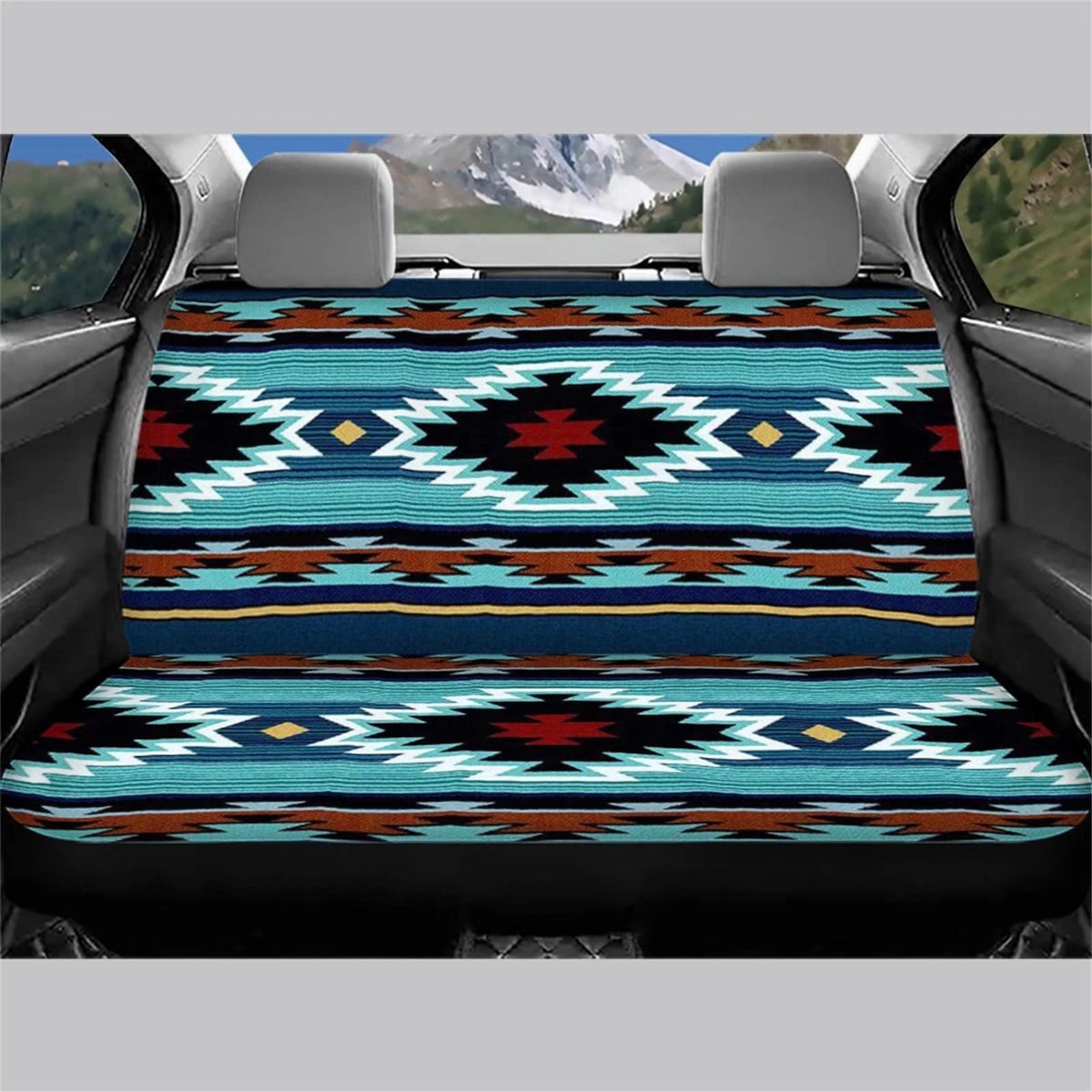 Wellflyhom Aztec Print Universal Rear Split Bench Seat Cover For Cars Truck Suv No Headrest Tribal Turquoise Geometric Stripe Design Back Seat Backrest Saddle Blanket Protector Set Of 2