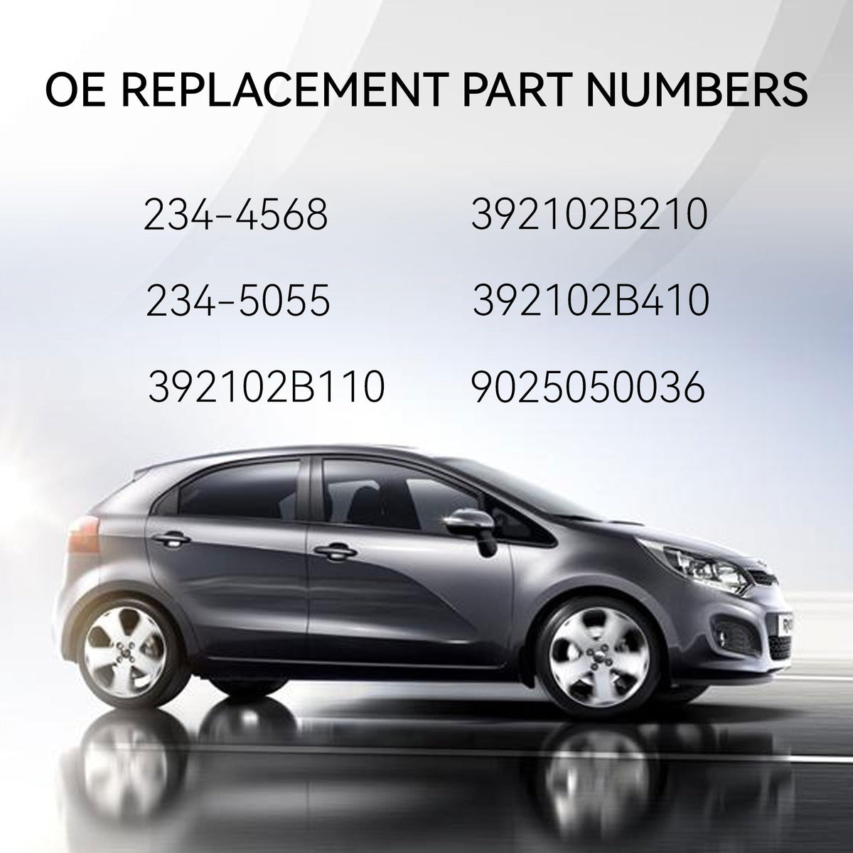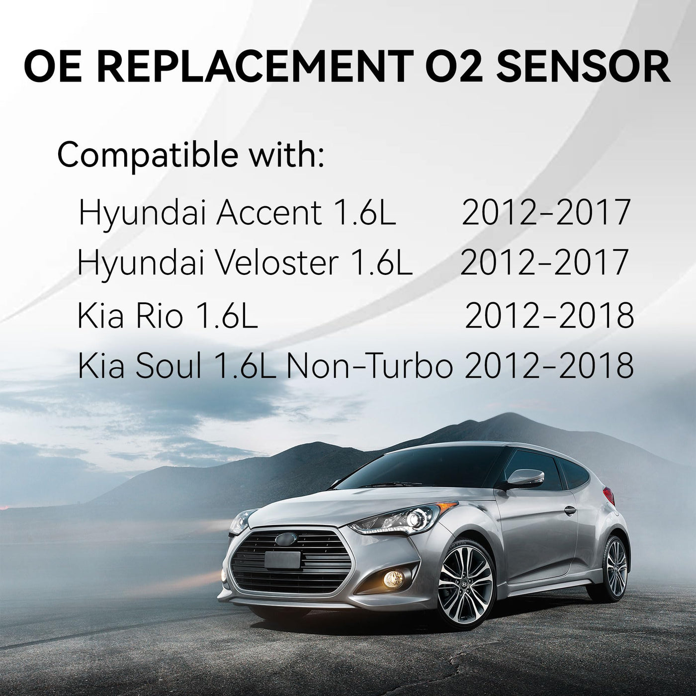OE Replacement O2 Sensor - Compatible with Hyundai and Kia Models OE Replacement Part Numbers: 234-4568, 234-5055, 392102B110, 392102B210, 392102B410, 9025050036 Compatible With: · Hyundai: Accent 1.6L (2012-2017), Veloster 1.6L (2012-2017) · Kia: Rio 1.6L (2012-2018), Soul 1.6L Non-Turbo (2012-2018) Key Features: · Easy Installation: Direct replacement of the original O2 sensors with no modifications required for a quick and hassle-free installation. · Enhanced Performance: Optimizes engine performance, improves fuel efficiency, and reduces harmful emissions. · Durable & Reliable: Built to resist high temperatures and corrosion, ensuring long-lasting performance. Order Now for a smooth, efficient driving experience with our OE replacement O2 sensors, designed to keep your vehicle running at its best.