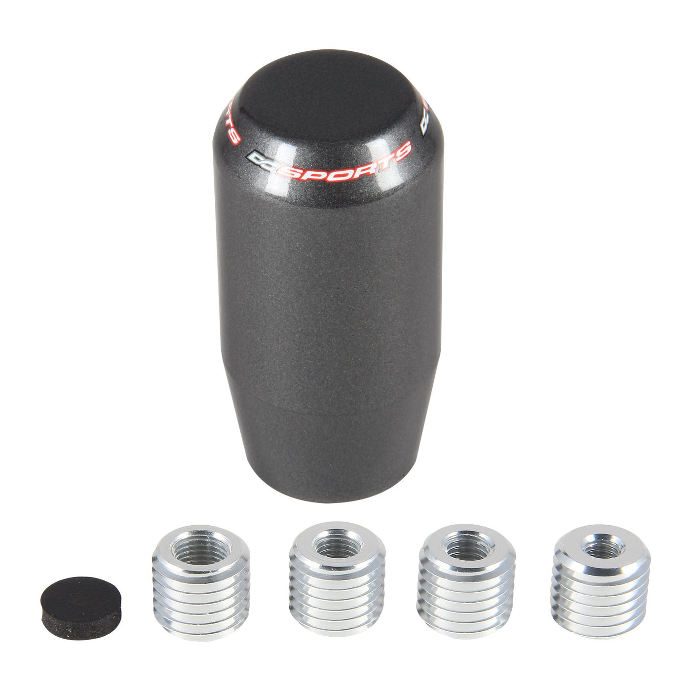 Easy Bolt-on replacement round tube style shift knob. Comes with four inserts to fit most applications (8x1.25, 10x1.25, 10x1.5 and 12x1.5). Knob weights 400grams (approx. 1lb). A weighted shift knob provides a solid shift with more control for a better overall shifting experience. Comes in a powder-coated gun metal grey finish and includes all necessary hardware.