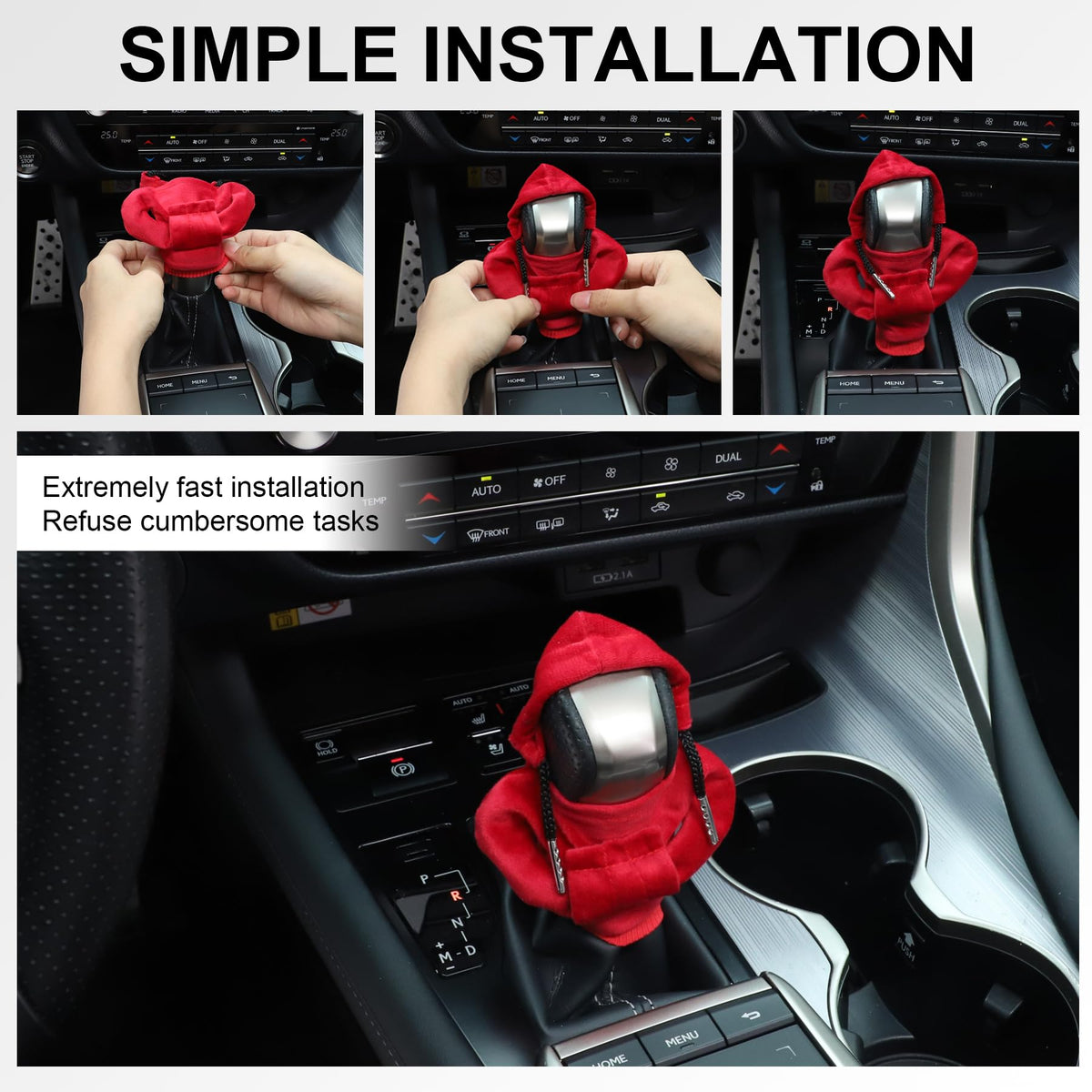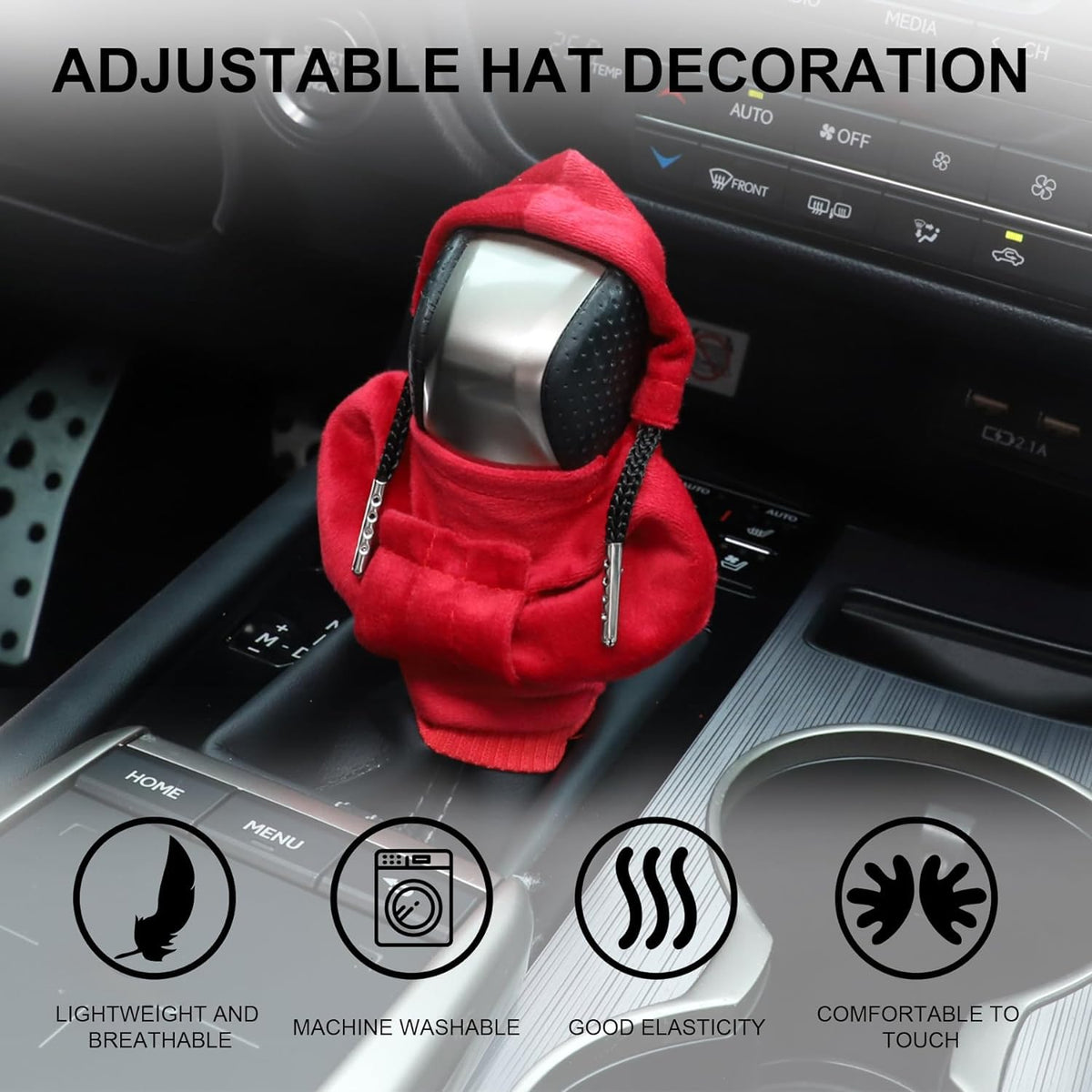Garhomxy Car Shifter Knobs Cover Hoodie, Car Gear Shift Knob, Cute Hoodie For Car Gear, Automatic Shift Knobs Decoration, Car Interior Accessories(Red)