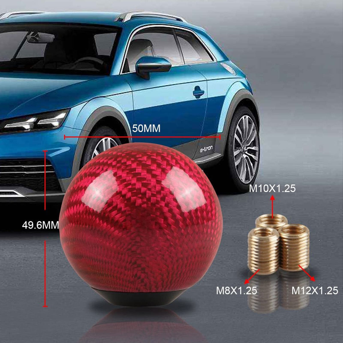 RYANSTAR Carbon Fiber Shift Knob Gear Shifter Knobs with 3 Adapters Round Ball Stick Shifter Level Red
