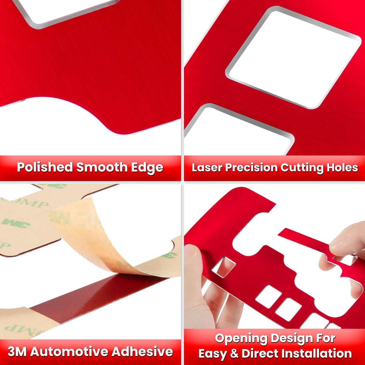 Q: How easy is it to install the gear shift panel cover?A: Installation is straightforward and requires no drilling or special tools. Simply clean the panel, peel the tabs, and stick it in place. For better adhesion, you may use a lighter to slightly heat the 3M adhesive tape before applying.
