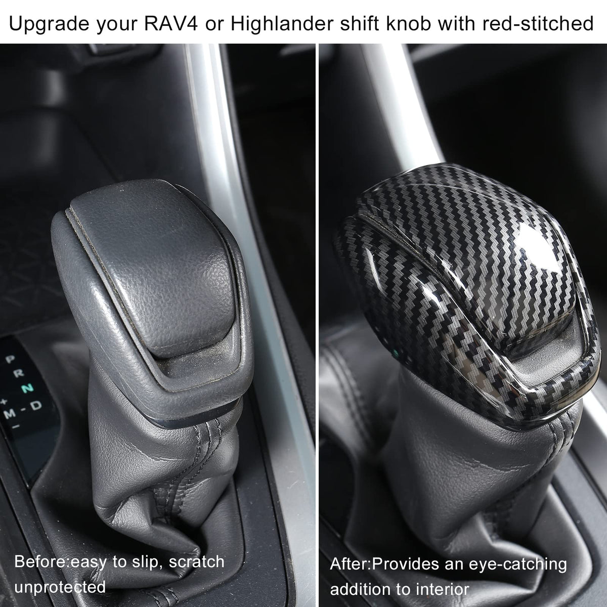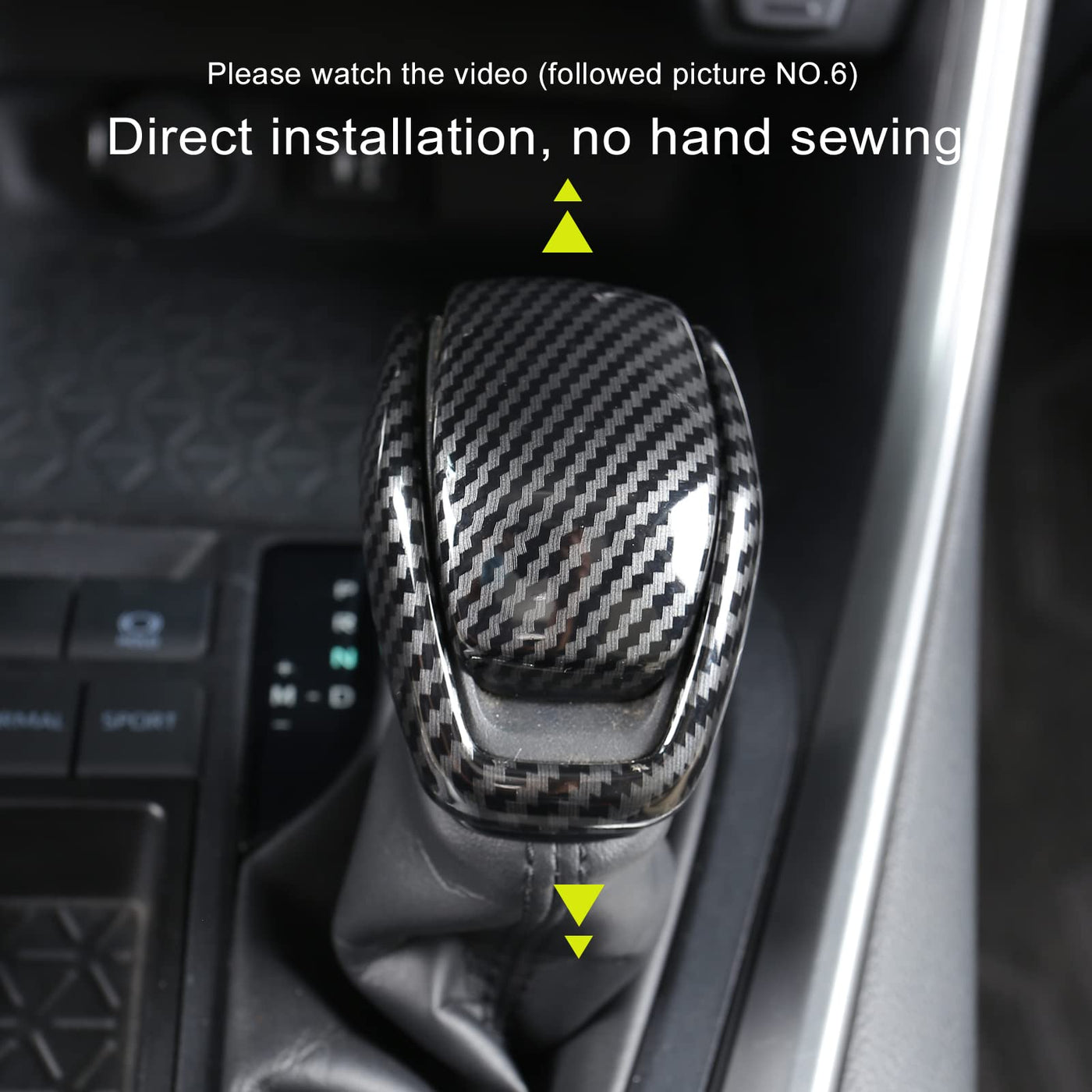 Yakaney For Totoya Rav4 2019-2025 Gear Shift Knob Cover, Carbon Fiber Grain Interior Protective Gear Shift Trim For Toyota Highl