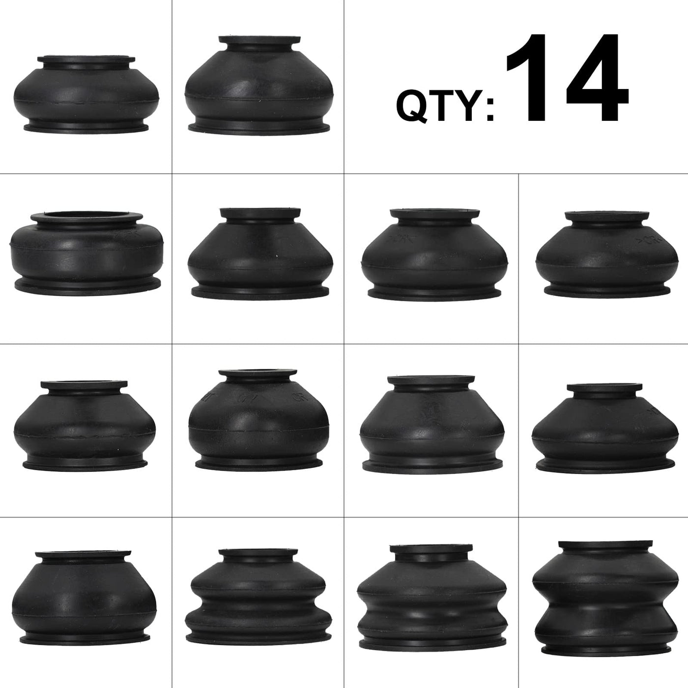 Q: What sizes do the rubber ball joint dust covers come in?A: The 14Pcs Universal Turn To Rod Arm Ball Joint Head Dust Protection Rubber Covers come in various sizes, including 11mm x 27mm x 25mm x 37mm, 11mm x 27mm x 22mm x 35.5mm, 13mm x 28mm x 22mm x 39.5mm, and more. Ensure you select the correct size based on your vehicle's requirements.