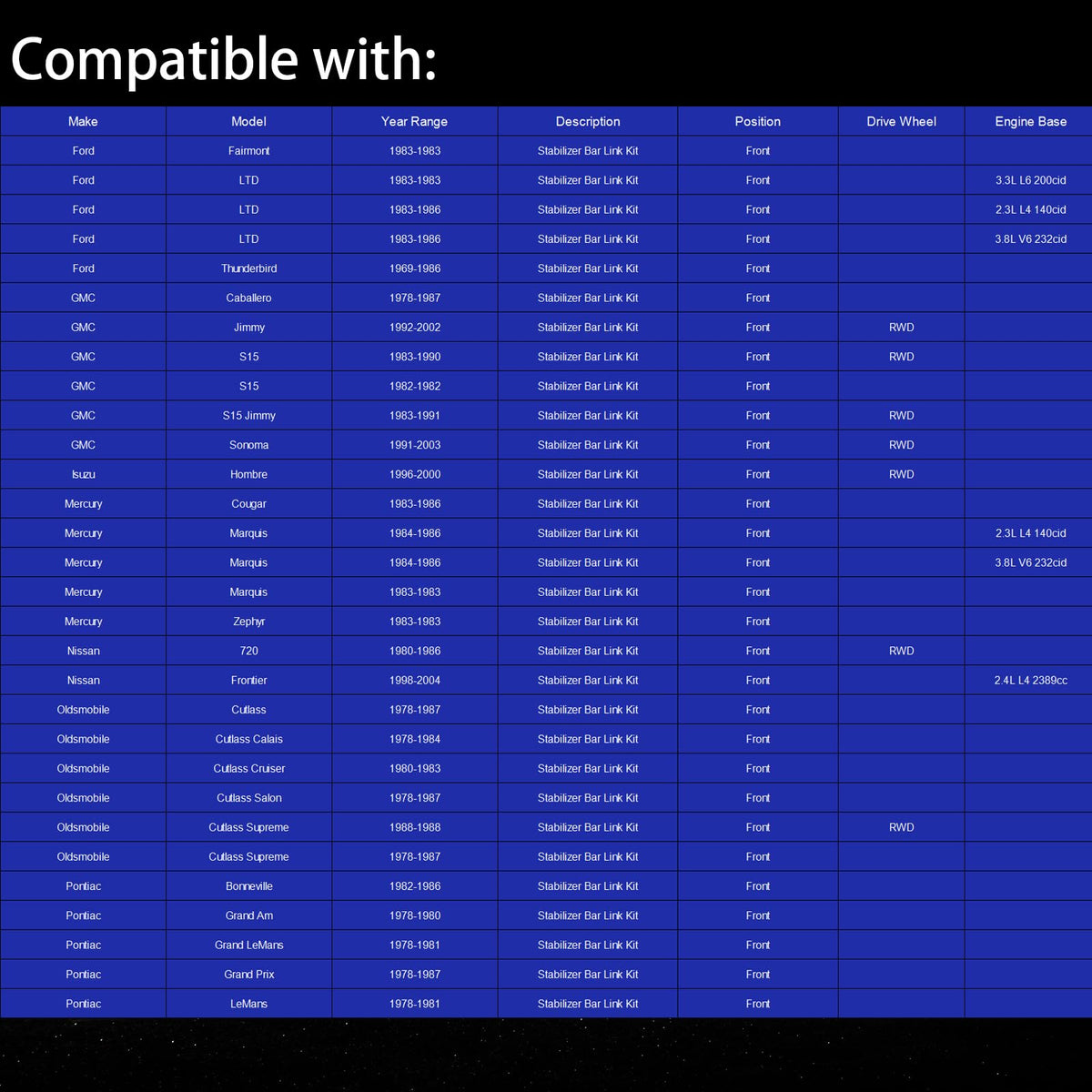 2 Pack Front Stabilizer Bar Link Fits For Buick, Chevrolet, Gmc, Ford, Front Sway Bar Link Kit Fits For Mazda, Mercury, Nissan,