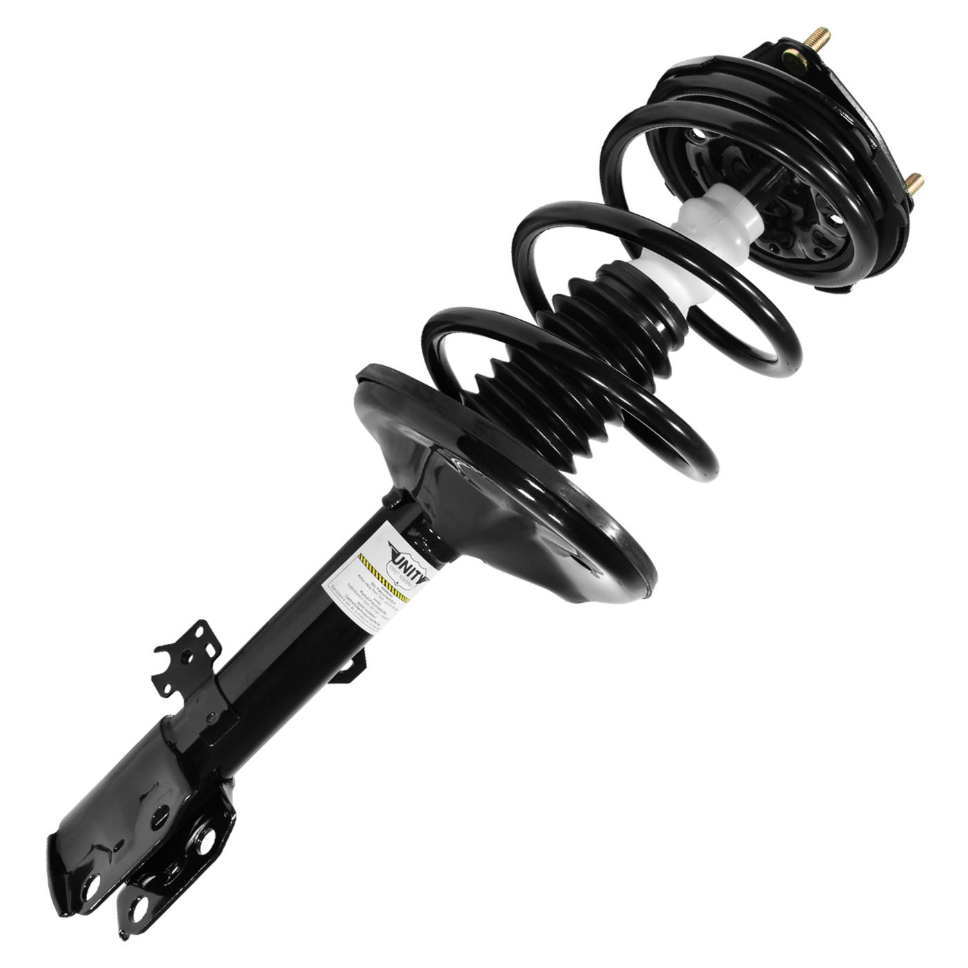 Q: What is included in the UNITY AUTOMOTIVE 11892 Front Right Complete Strut Assembly?A: The UNITY AUTOMOTIVE 11892 Front Right Complete Strut Assembly includes all essential components for installation, such as the top mount, bearing plate, bumper, insulators, and coil spring. This preassembled suspension strut assembly ensures a hassle-free repair experience.
