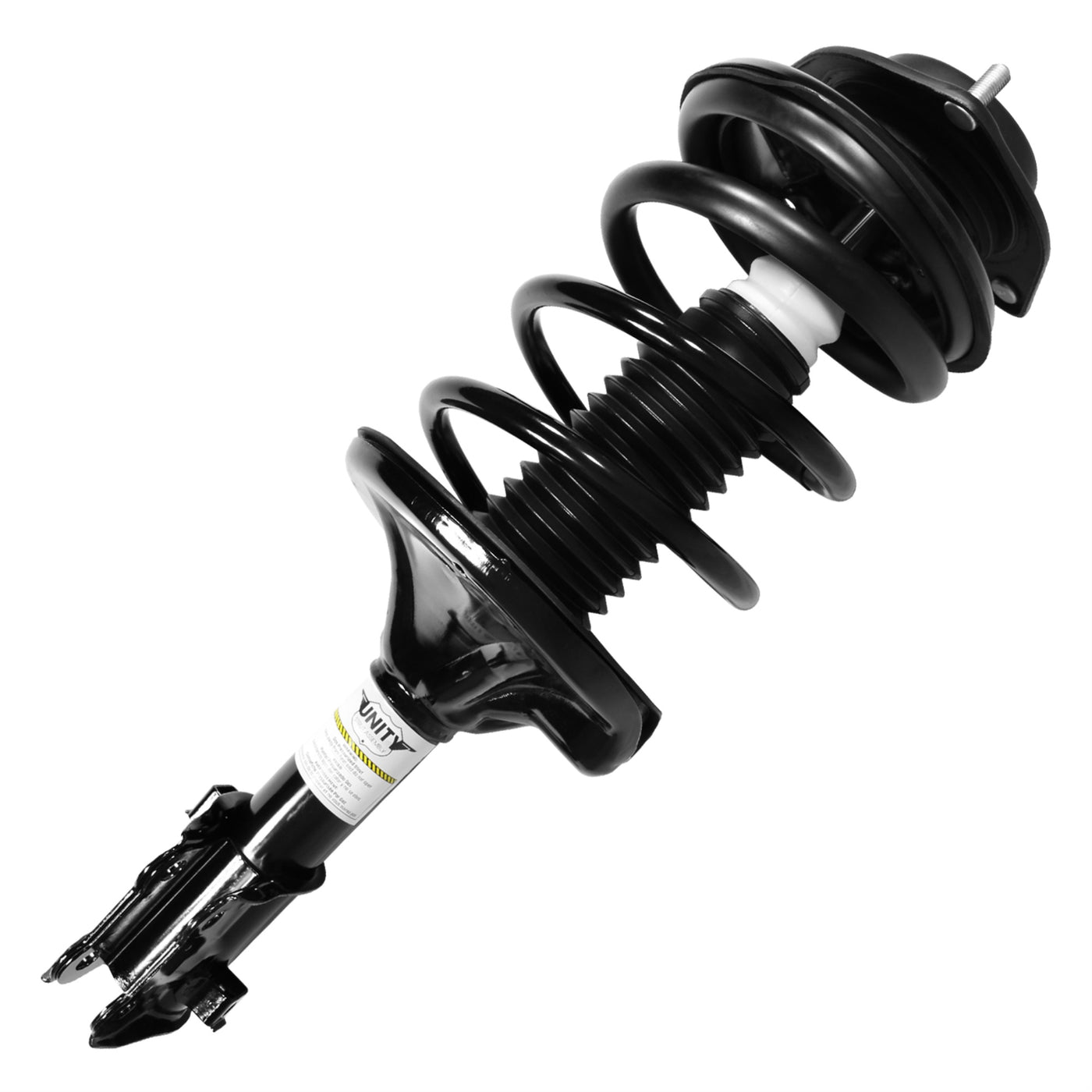 Q: What are the key features of the Unity complete strut assembly?A: The key features of the Unity complete strut assembly include a preassembled design with top mount, bearing plate, bumper, insulators, and coil spring. This assembly restores your vehicle's factory ride height and provides a stable, comfortable ride.