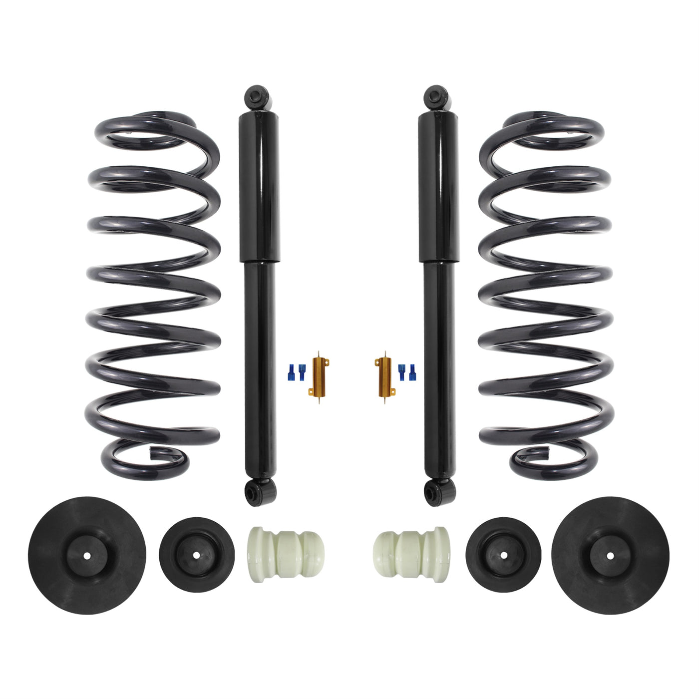 Q: How does the conversion from air suspension to steel springs improve my vehicle's ride?A: Converting from air suspension to steel springs with the Unity Automotive kit restores your vehicle's factory ride height, providing a stable and comfortable ride. This setup eliminates the common issues associated with air suspension, ensuring long-lasting reliability and reduced maintenance.