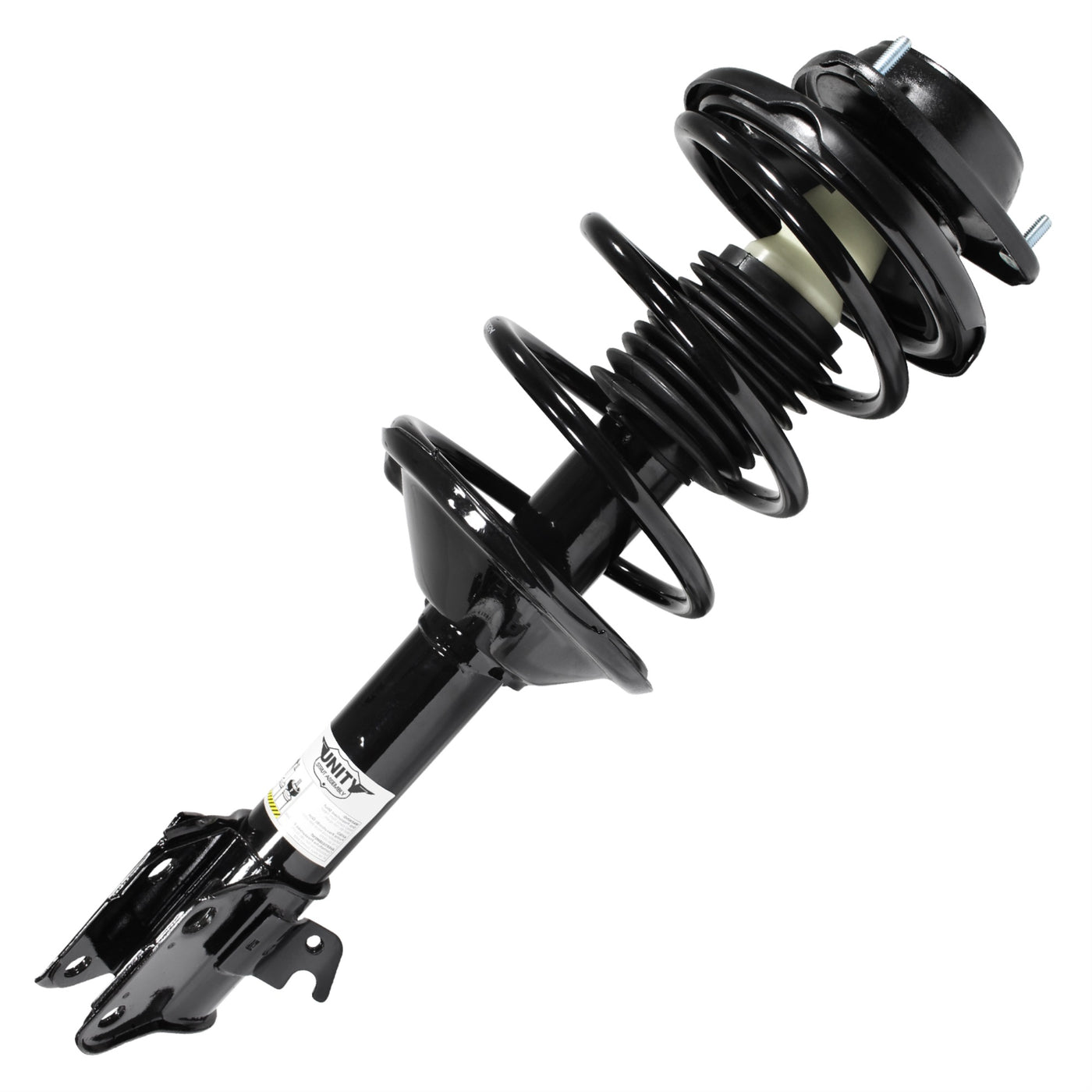 Q: What is included in the UNITY AUTOMOTIVE 11112 Front Right Complete Strut Assembly?A: The UNITY AUTOMOTIVE 11112 Front Right Complete Strut Assembly includes a preassembled suspension strut with top mount, bearing plate, bumper, insulators, and coil spring, providing everything you need for installation.