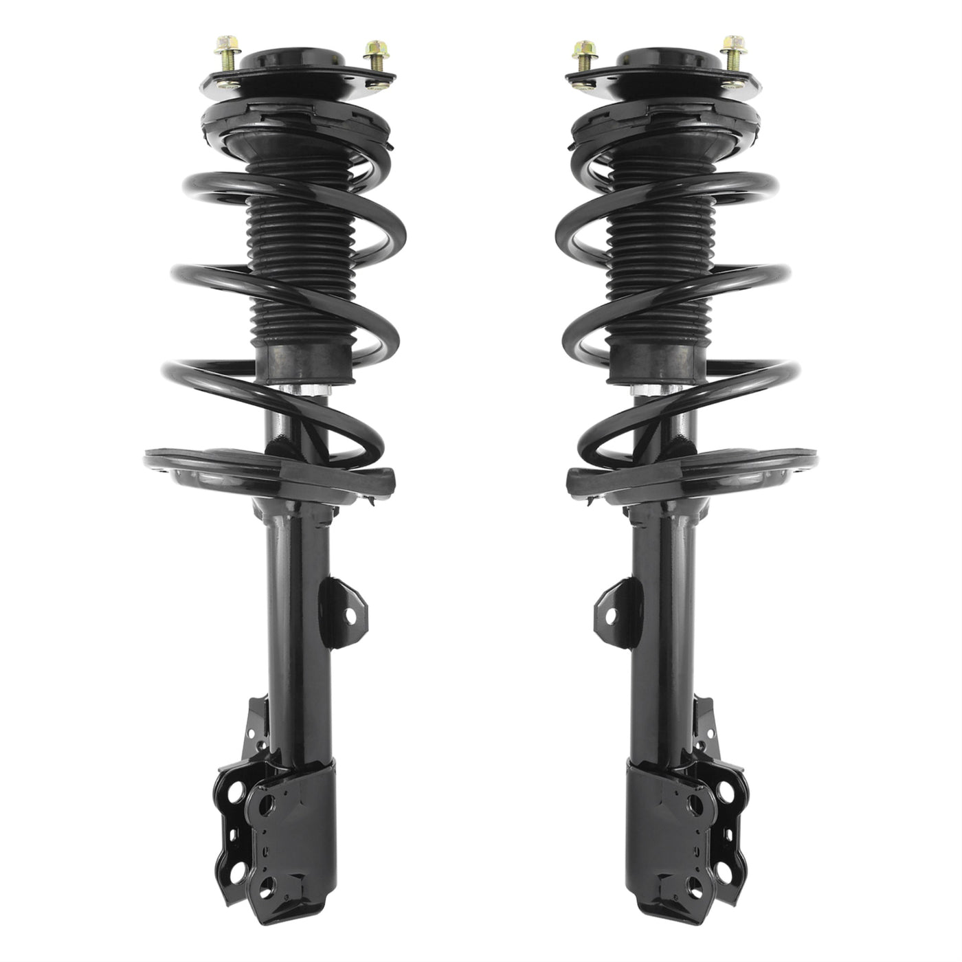 Q: What is included in the Unity Automotive Front 2 Wheel Complete Strut Assembly Kit?A: The Unity Automotive Front 2 Wheel Complete Strut Assembly Kit includes two complete strut assemblies, each featuring a preassembled suspension strut with top mount, bearing plate, bumper, insulators, and coil spring.