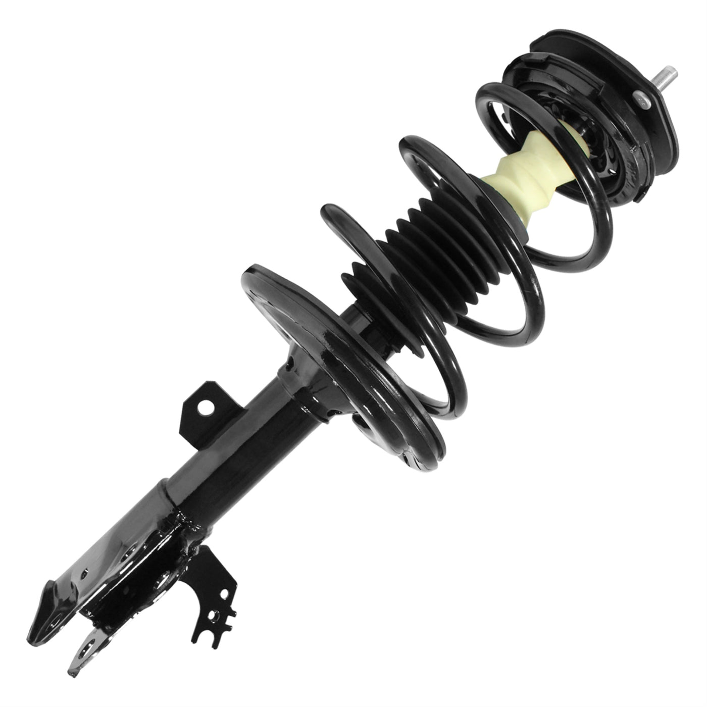 Q: What is included in the UNITY AUTOMOTIVE 11694 Front Right Complete Strut Assembly?A: The UNITY AUTOMOTIVE 11694 Front Right Complete Strut Assembly includes a preassembled suspension strut with a top mount, bearing plate, bumper, insulators, and coil spring, providing all new components for an easy installation.