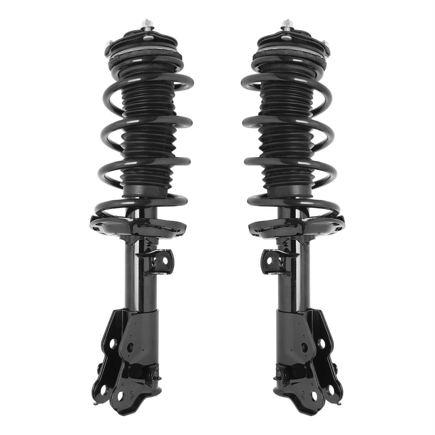 Q: What is included in the Unity Automotive Front 2 Wheel Complete Strut Assembly Kit?A: The Unity Automotive Front 2 Wheel Complete Strut Assembly Kit includes two complete strut assemblies, which come preassembled with a top mount, bearing plate, bumper, insulators, and coil spring for an easy installation.