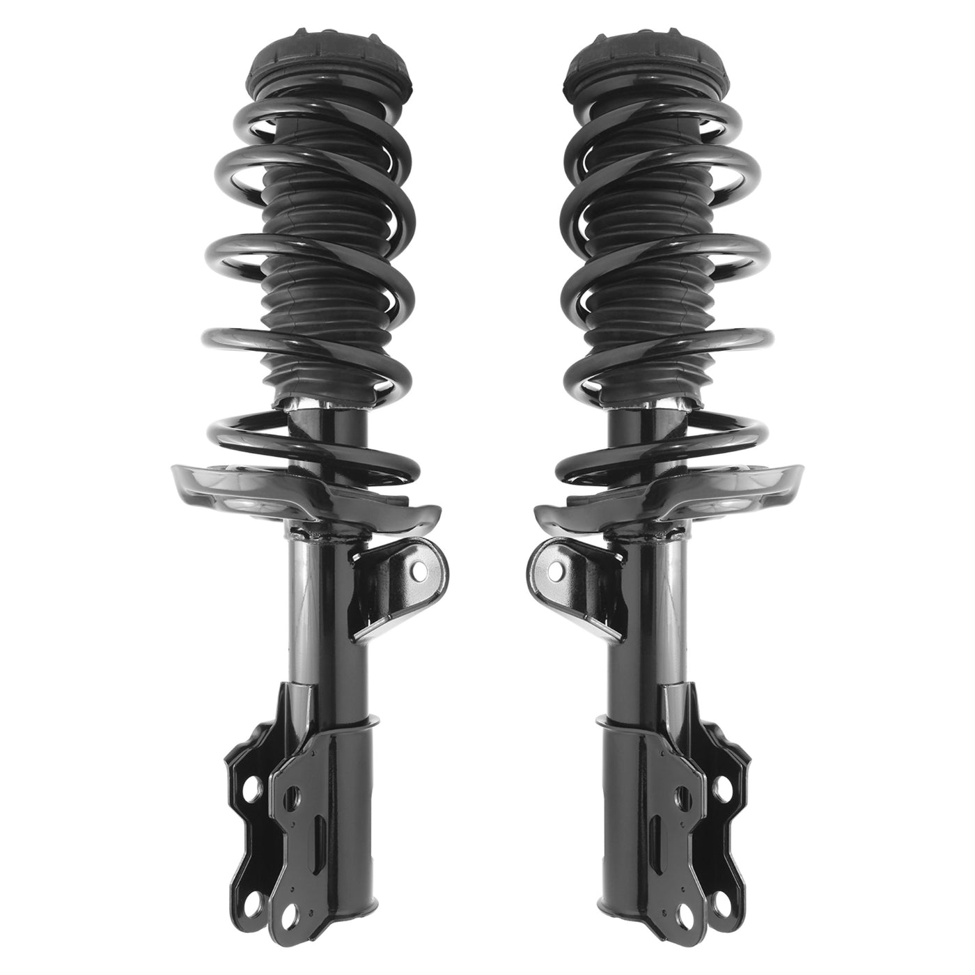 Q: What is included in the complete strut assembly kit?A: The kit includes two complete strut assemblies along with all necessary components such as top mount, bearing plate, bumper, insulators, and coil spring for a complete and hassle-free installation.