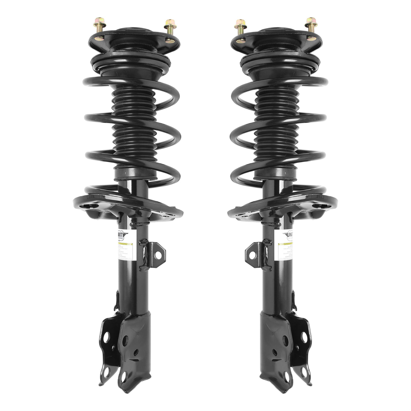 Q: What is included in the Unity Automotive Front 2 Wheel Complete Strut Assembly Kit?A: The Unity Automotive Front 2 Wheel Complete Strut Assembly Kit includes two complete strut assemblies, each preassembled with a top mount, bearing plate, bumper, insulators, and coil spring, ensuring a hassle-free installation.