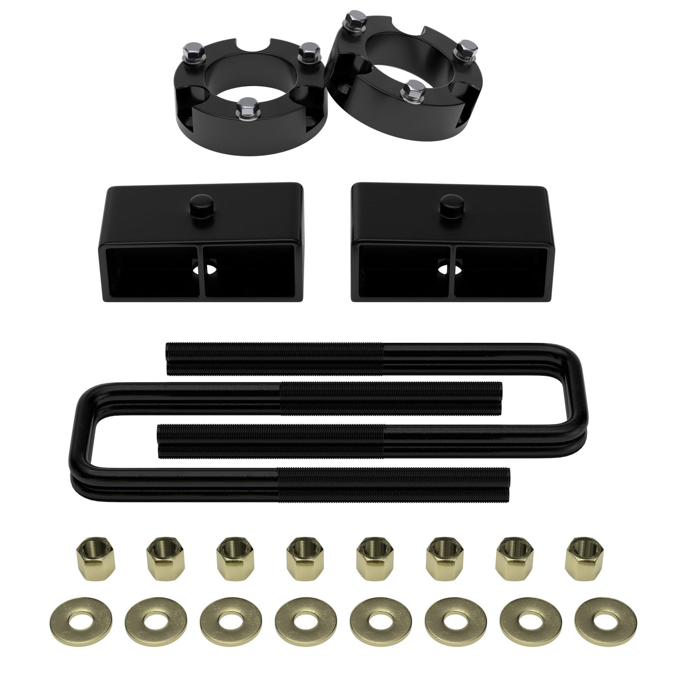 3'' Front and 2'' Rear Leveling Lift Kit for 1995-2004 Tacoma, 3'' Front Strut Spacers and 2'' Rear Black Leveling Lift Block Kit Extended Square U-Bolts, 3''+2'' Height for 1995-2004 Tacoma