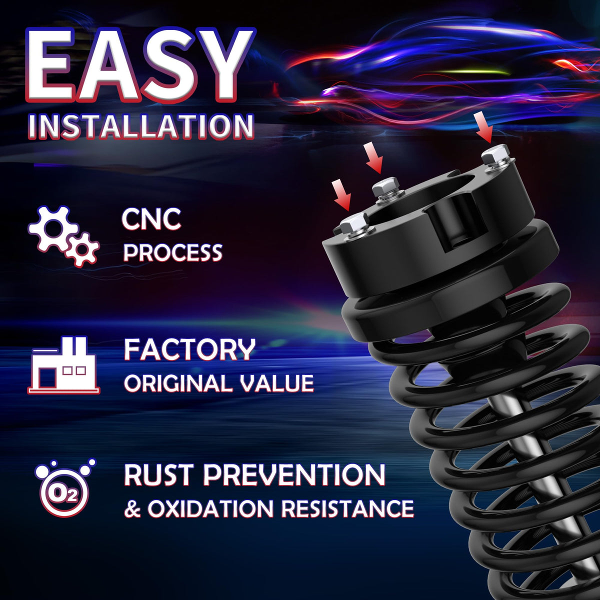 3'' Front And 2'' Rear Leveling Lift Kit For 1995-2004 Tacoma, 3'' Front Strut Spacers And 2'' Rear Black Leveling Lift Block Ki