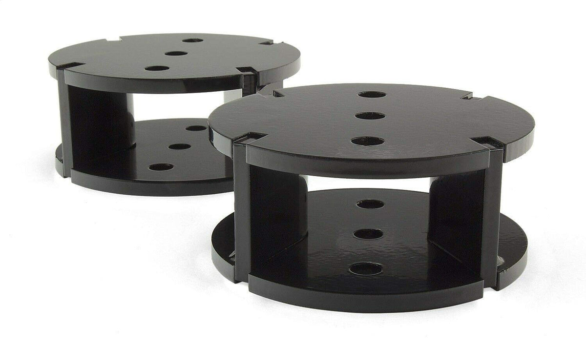 Q: What materials are the Air Spring Spacers made of?A: The spacers are built with high-grade 1/4" steel, ensuring they can handle more than 10 tons of force, providing durability and strength for heavy loads.