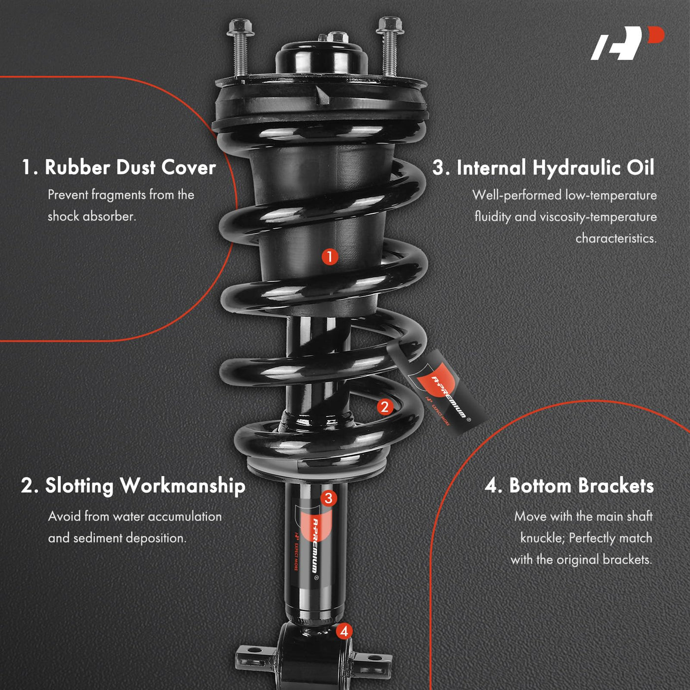 A-Premium 2x Front Strut and Coil Spring Assembly Compatible with Chevy and GMC Vehicles - [w/o 22'' Wheels] - Avalance 2007-201
