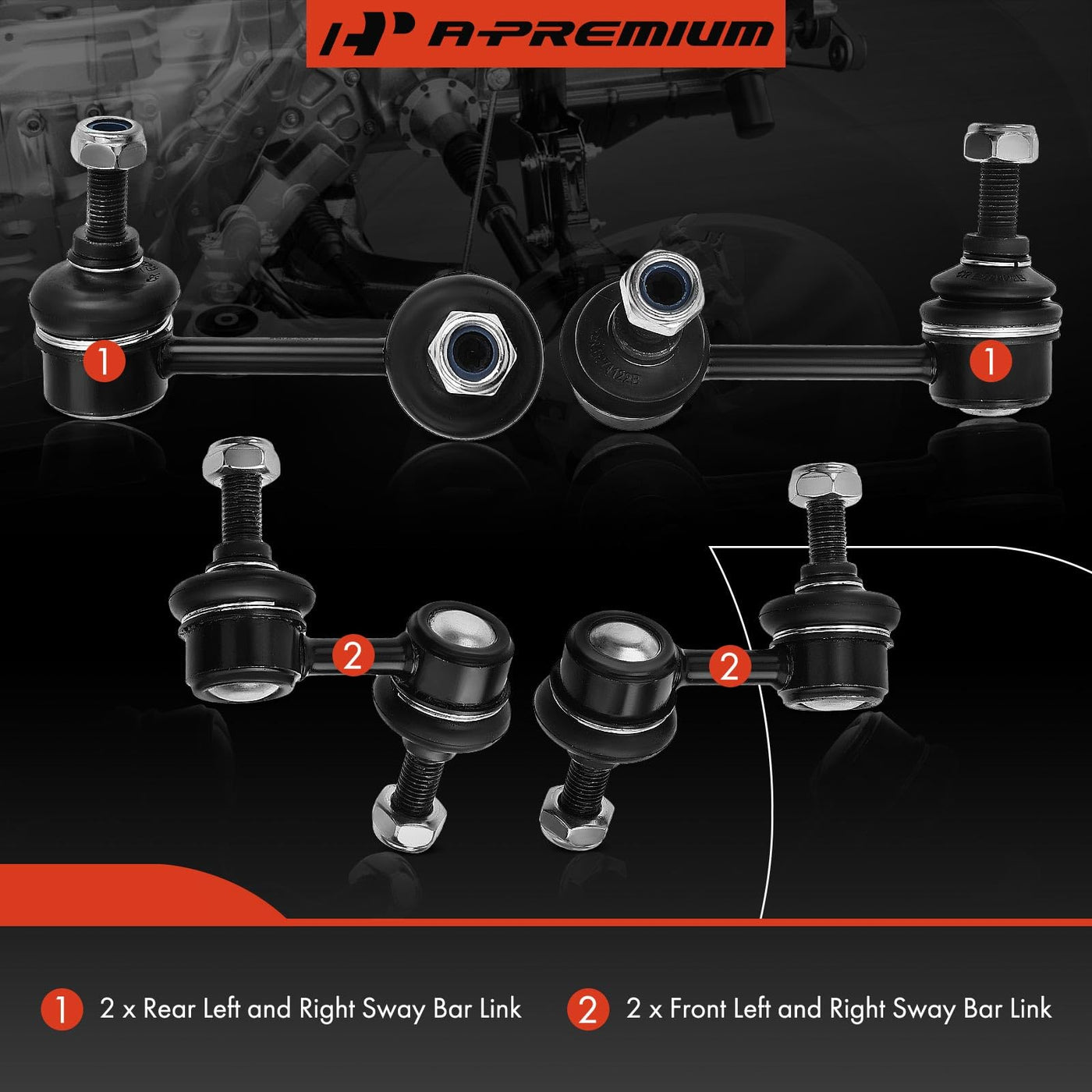 A-Premium Set of 4, Front & Rear Sway Bar Links Kit Stabilizer Bar Links, Compatible with Honda Element 2003-2011