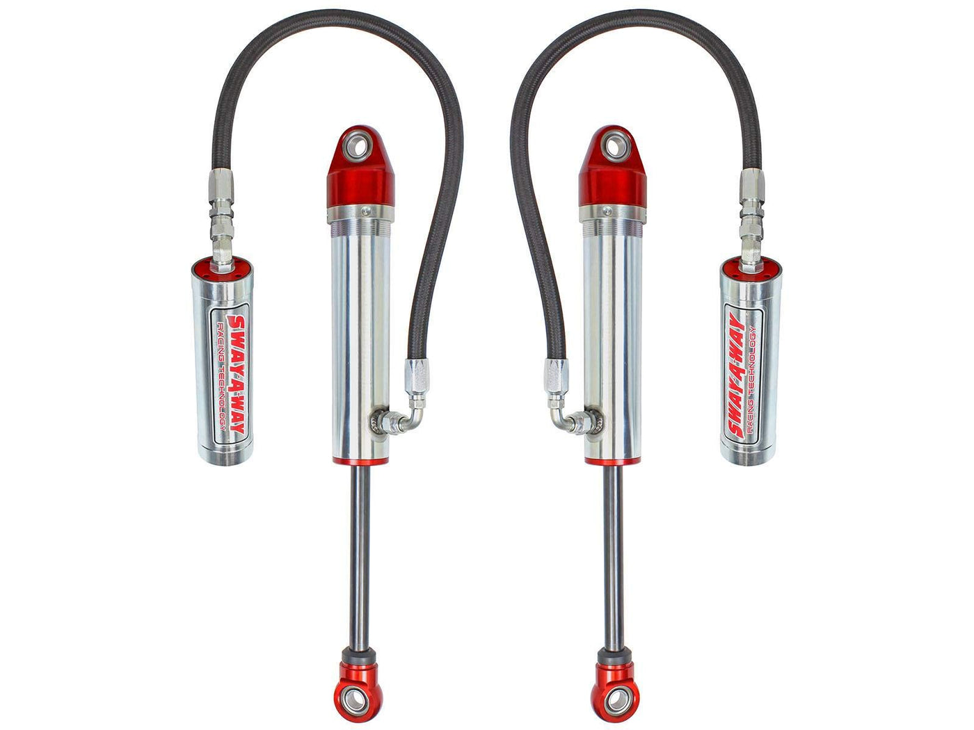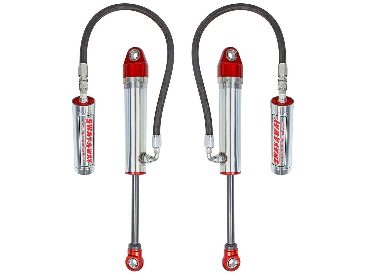 aFe Control is proud to introduce the recently acquired Sway-A-Way line of High Performance replacement shock absorbers. These 2.0 diameter shocks feature all the same race winning engineering and components that have 20+ years of testing into a specifically designed kit that will bolt directly into your daily driven vehicle. This kit offers adjustable ride height and better off road damping curves without sacrificing any on road comfort or handling. These rear shocks are 100% designed and built in the USA that feature bright zinc plated steel cylinder bodies and CNC machined aluminum components. Also included are rear coil springs that provide 1-2 of lift. This package is designed as a direct fit application and requires no modifications to the vehicle.