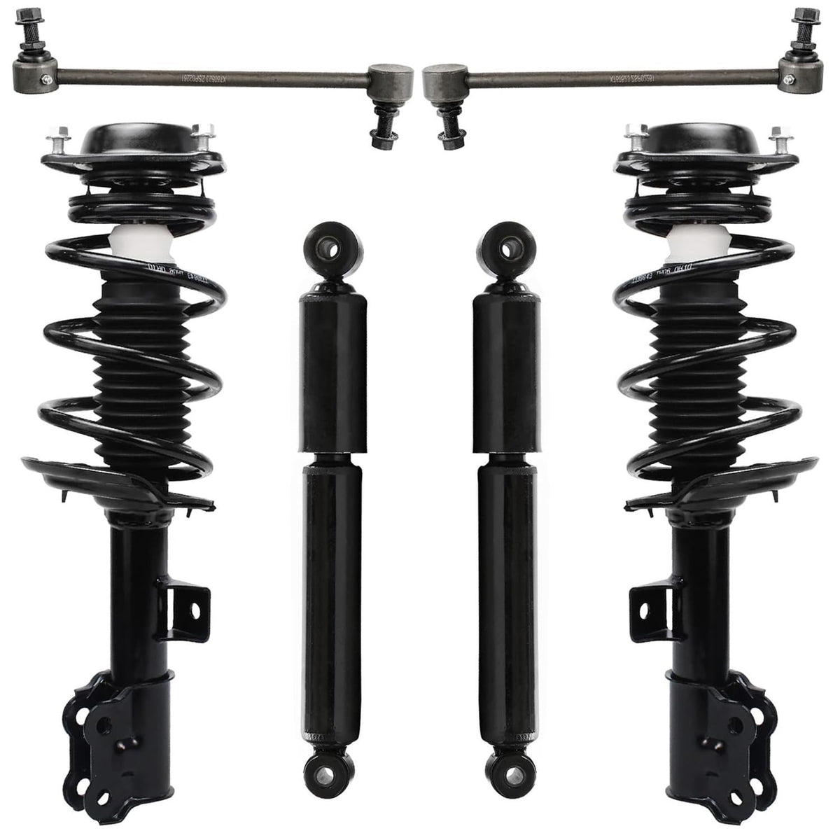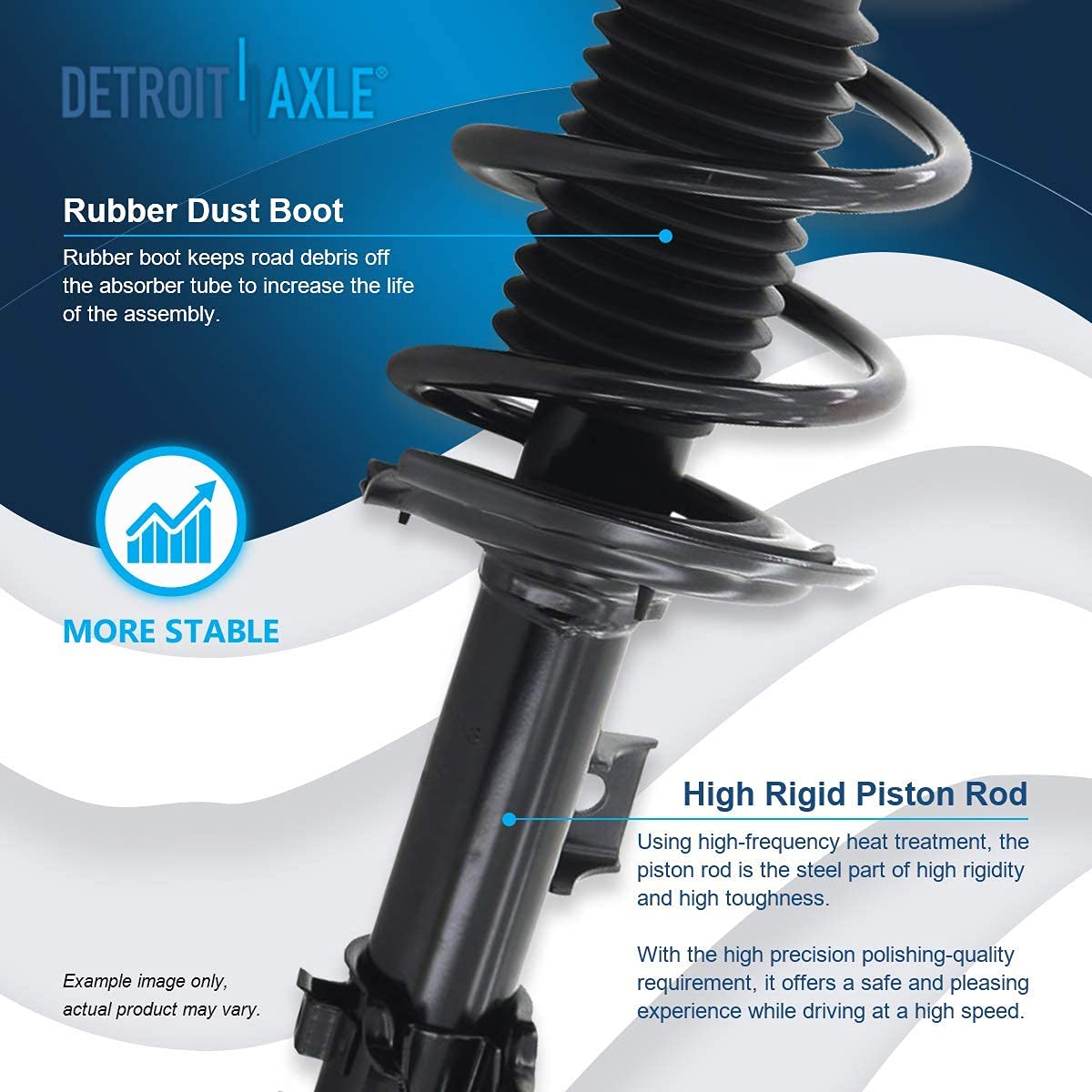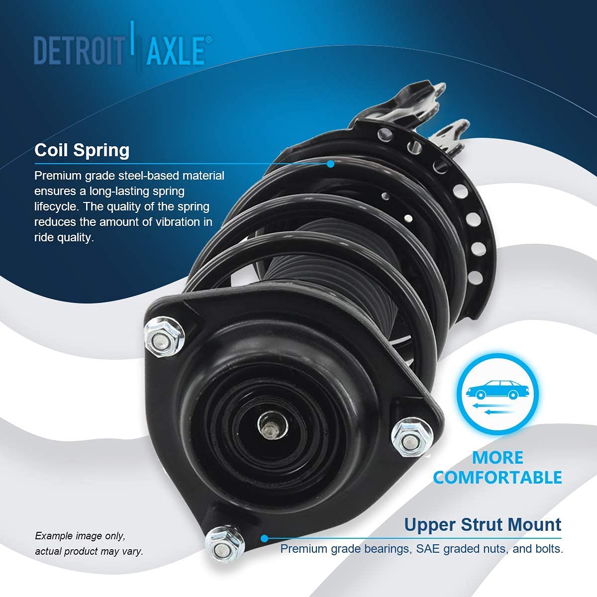 Kit Includes: 1x Front Strut & Coil Spring Assembly - Driver Side - 172709 1x Front Strut & Coil Spring Assembly - Passenger Side - 172708 2x Rear Shock Absorbers - Driver & Passenger Side - 45671 2x Front Sway Bar End Links - Driver & Passenger Side - K750523 Fitment: Replacement for 2011-2013 Hyundai Elantra (GLS; Limited) Replacement for 2014-2016 Hyundai Elantra Introduction: Detroit Axle is a leading global retailer and distributor of OE re-manufactured and new aftermarket auto parts. We are committed to providing first-class products and outstanding customer service at an incredible value. Our rapidly-expanding product line includes CV Axles, Wheel Hub & Bearings, Suspension & Chassis parts, Complete Strut Assemblies, Shock Absorbers, Drilled & Slotted Brake Rotors, Conventional Brake Rotors, Ceramic Brake Pads, Brake Fluids, Brake Cleaners, Rack & Pinion Assemblies, Gearboxes, Drive Shafts, Transmissions, Brake Calipers, Wheel Lug Nuts, and more. With over 30 years of experience, we are proud that millions of customers around the world rely on Detroit Axle parts. We have two Metro Detroit storefront locations on the north and west sides of the city. Our flagship location, in the heart of Detroits 8 Mile Road, is a combined retail storefront and over 180,000 square feet of the warehouse that serves as our global distribution center.