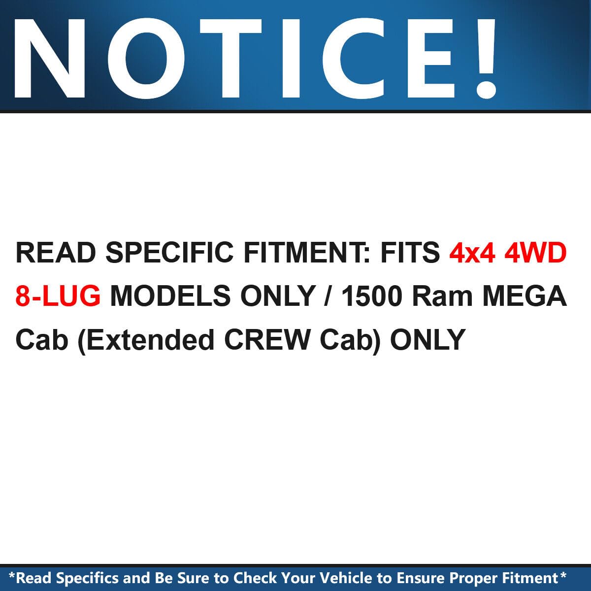 Replacement For 2006-2008 Dodge Ram 1500 (4Wd ; 8-Lug Wheels - Extended Mega Cab Only)