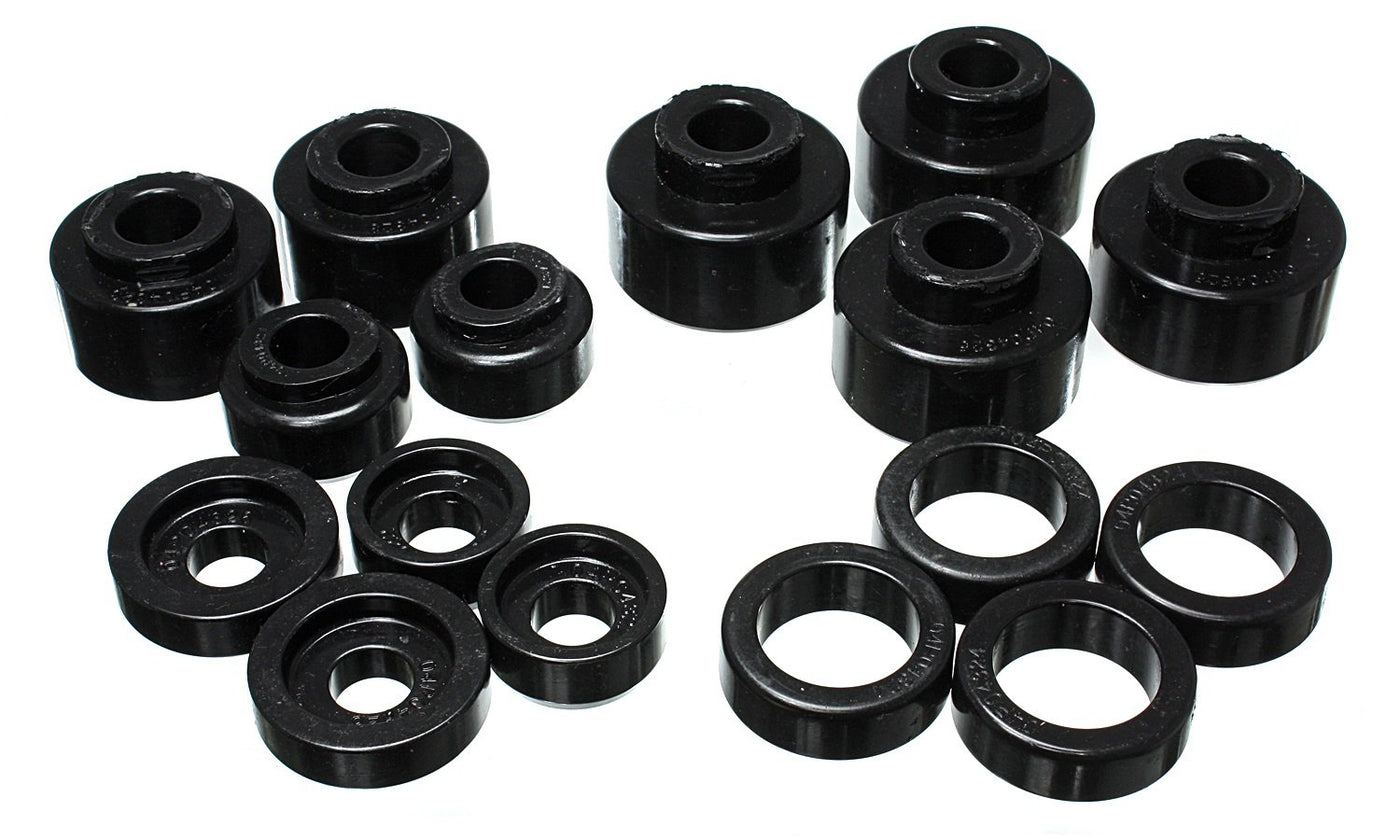 Q: What are the benefits of using polyurethane body mounts?A: Polyurethane body mounts, like those in the Energy Suspension set, provide improved handling, reduced noise and vibration, and enhanced performance, making them a preferred choice for automotive enthusiasts.