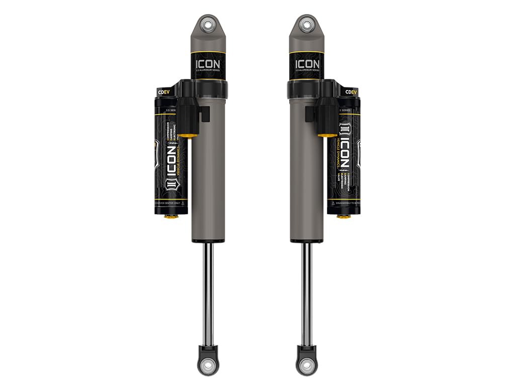 Icon Vehicle Specific (V.S.) 2.5 Aluminum Series Shocks With Cdev Are Designed And Built To Give Your Vehicle Outstanding Performance Off-Road And A Smooth Ride On The Street. These Shocks Are Configured Specifically For Each Application In Both Length And Damping Tune. For Piggyback And Specific Remote Reservoir Applications, Icon'S Unique Use Of A 6061-Billet Aluminum Manifold A Few Inches Below The Top Cap Of The Shock Creates An Internal Bump Zone That When Used Creates An Additional 20% Of Damping Force. This Additional Force Helps Prevent Harsh Bottom Outs And Controls The Suspension When Compressing At High Velocity. Like All Icon'S Shock Absorbers, V.S. 2.5 Aluminum Series Shocks With Cdev Are Fully Rebuildable And Re-Tunable. The Icon Cde Valve Upgrade Is Included For Those Desiring An Easy Way To Tune The Ride Electronically From Inside The Vehicle.Compression Damping Electronic Valve (Cdev) Is An Electronically Controlled Valve That Meters The Flow Of Oil To Regulate The Amount Of Damping Force That Is Created By The Shock When Compressed. This Infinitely Variable Valve Can React In Less Than 40Ms And Has The Ability To Make Extremely Precise Adjustments For Varying Terrain. Cdev?S Hydraulic Circuits Are Also Custom Tailored Per Application To Create The Highest Resolution And Dynamic Range Allowable For Each Specific Vehicle. Powered By Icon Intelligent Control And Proprietary Icon Mobile App, The System Uses Information From The Onboard G-Force Sensor And Gyroscope To Perform Calculations Based On Algorithms And User-Defined Settings To Predict Terrain And Adjust Shock Settings Via The Cdev Accordingly.