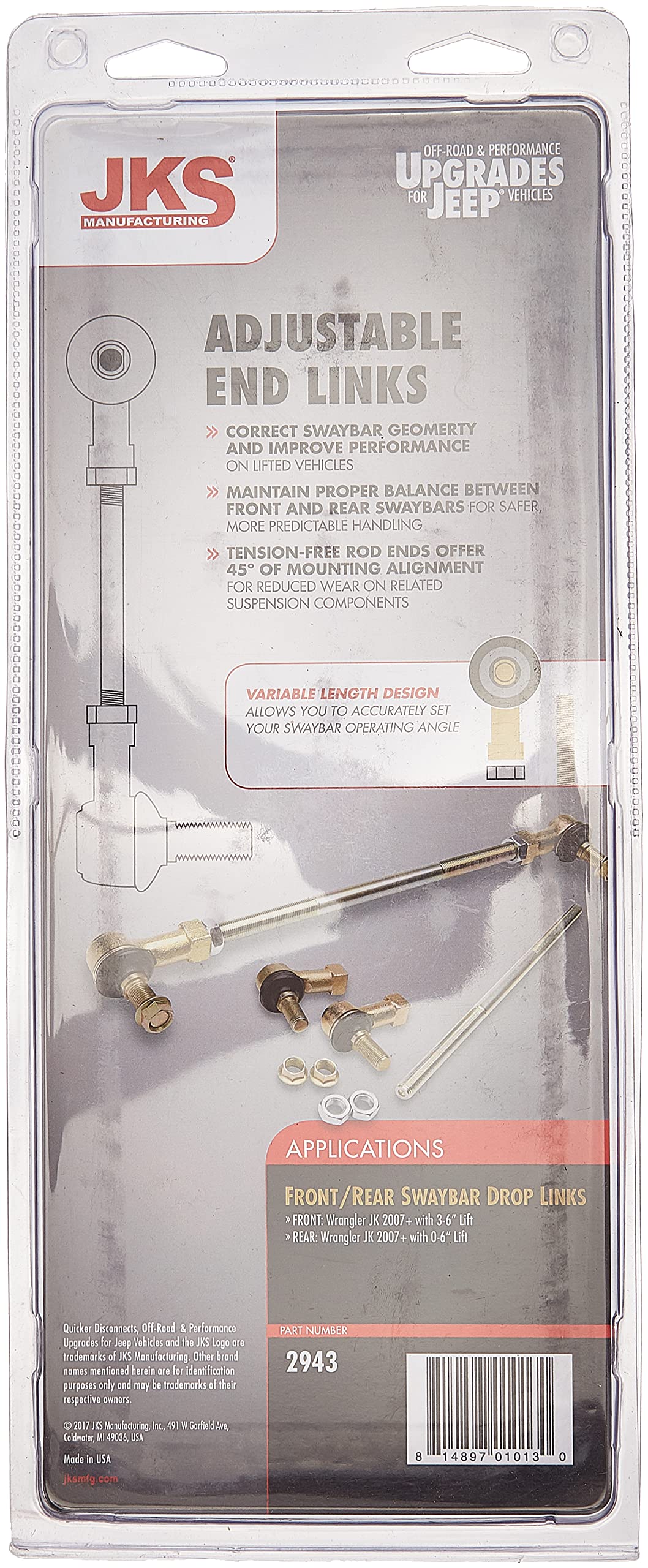JKS MFG. JKS 2943 Rear Adjustable Swaybar End Link Kit for Jeep JK