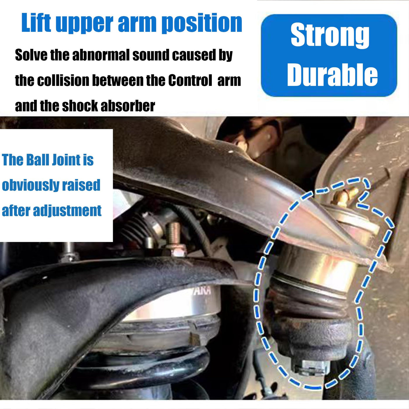 Q: What should I do if I experience noise or clunking from my suspension after installation?A: If you notice any unusual noises or clunking sounds after installation, it may indicate that the control arm is contacting the spring at near full extension. In such cases, double-check the installation and ensure compatibility with your vehicle's suspension setup.