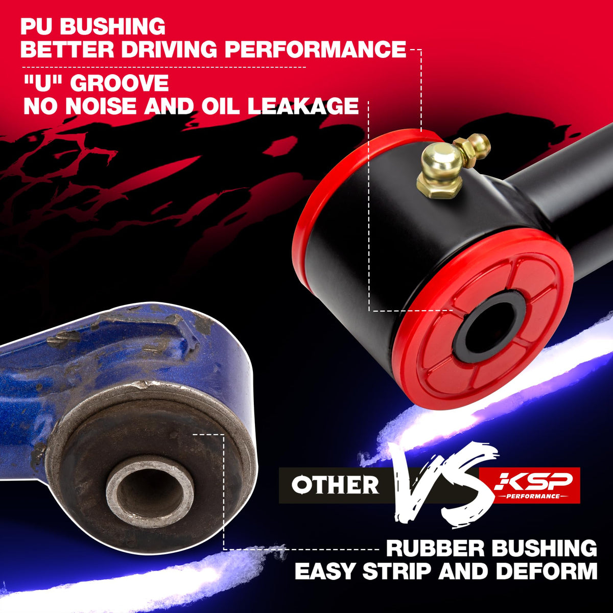 ***Ksp Performance Front Upper Control Arms W/H High Quality Guarantee***Features And Benefits:1.Designed For Vehicles With 2 To 4 Inches Offroad Lift2.Improves Suspension Travel 3.Cnc Bended Dom Seamless Tubing With Heavy Duty Pre-Pressed Ball Joint 4.Professionally Precision Welded 5.Dual Stage Bushing Design For Improved Durability & Response 6.Corrects Geometry For Proper Alignment And Improved Handling 7.Polyurethane Bushings, Zert Fittings For Easy Lubrication 8.Ed Process And Painting For The Highest Durability 9.Direct Replacement For Factory Arms On Suspension That Require 10.Additional Strength And Alignment Geometry 11.Professional Installation Recommended 12.Hardware Included Fitment: Chevy 1988-1999 K1500 4Wd, 1992-1994 Blazer 4Wd, 1995-1999 Tahoe 4Wd, 1993-1999 Chevy K1500 Suburban 4Wd. Fit For Gmc 1988-1999 K1500 4Wd, 1994-1999 K1500 Suburban 4Wd, 1992-1999 Yukon 4Wd Description -These Control Arms Are Direct Replacement For Factory Arms On Suspension That Require Additional Strength And Alignment Geometry.-Designed Specifically For Chevy & Gmc K1500 4Wd 4X4 Rwd With 2 Inch To 4 Inches Of Front Lift Will Restore Proper Geometry And Alignment Which Will Improve Driving, Handling Characteristics And Suspension Articulation. Includes Polyurethane Bushings And Zerk Fittings For Simple Lubrication.
