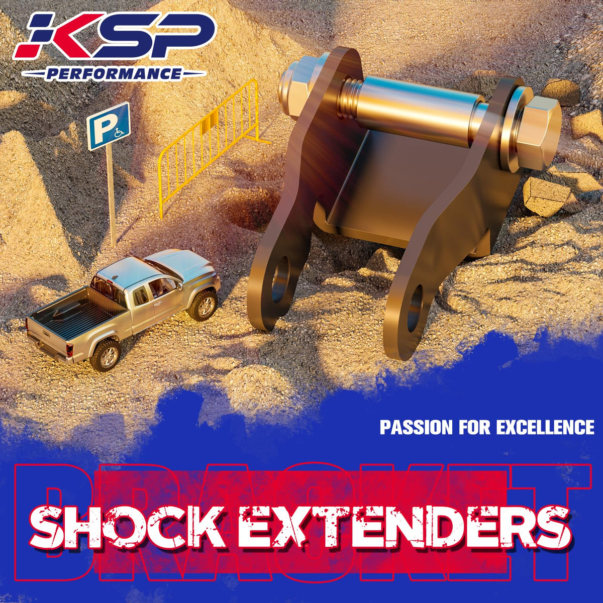 Q: How do I install the KSP Shock Extenders?A: The installation of KSP Shock Extenders is straightforward as they are designed for direct bolt-on to the shock mounts. You won't need to cut or drill, making installation easy with the included parts: 2 shock extender brackets, 6 bolts, and 2 axle tubes.