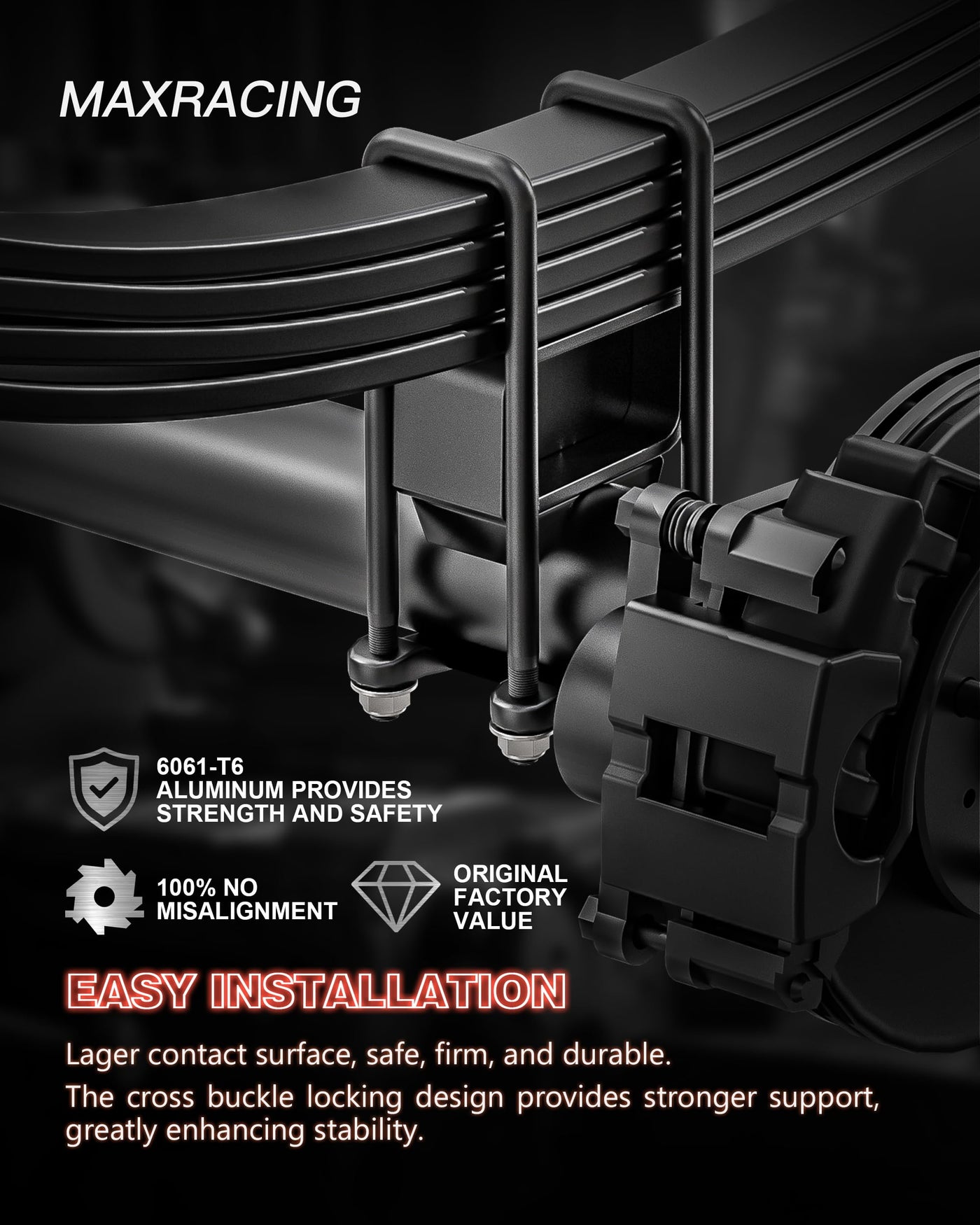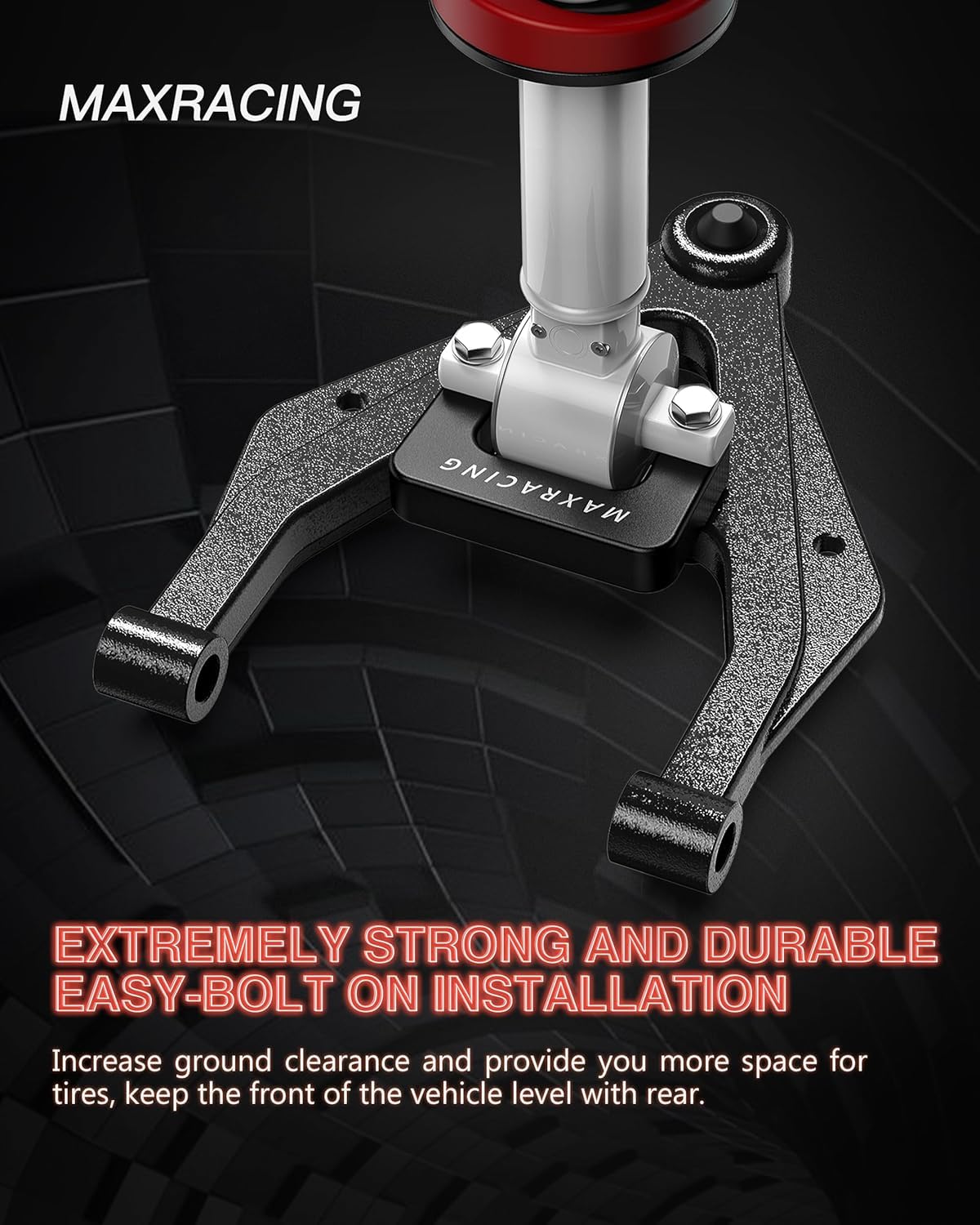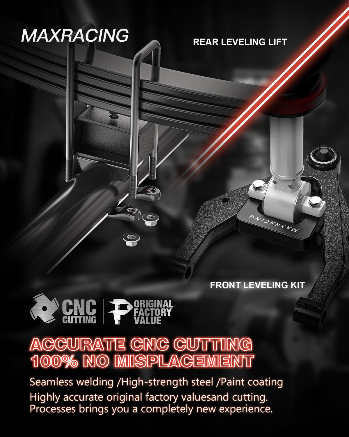 Maxracing 2'' Front + 2'' Rear Leveling Kit will raise the rear of your Chevy Silverado 1500/GMC Sierra 1500. If you want to improve the look of your vehicle, Maxracing is the strongest and would not crack over time.